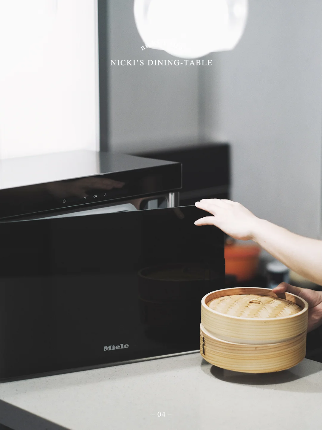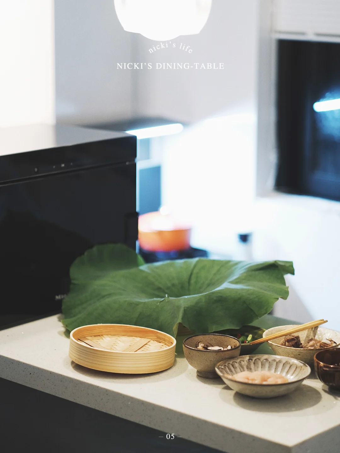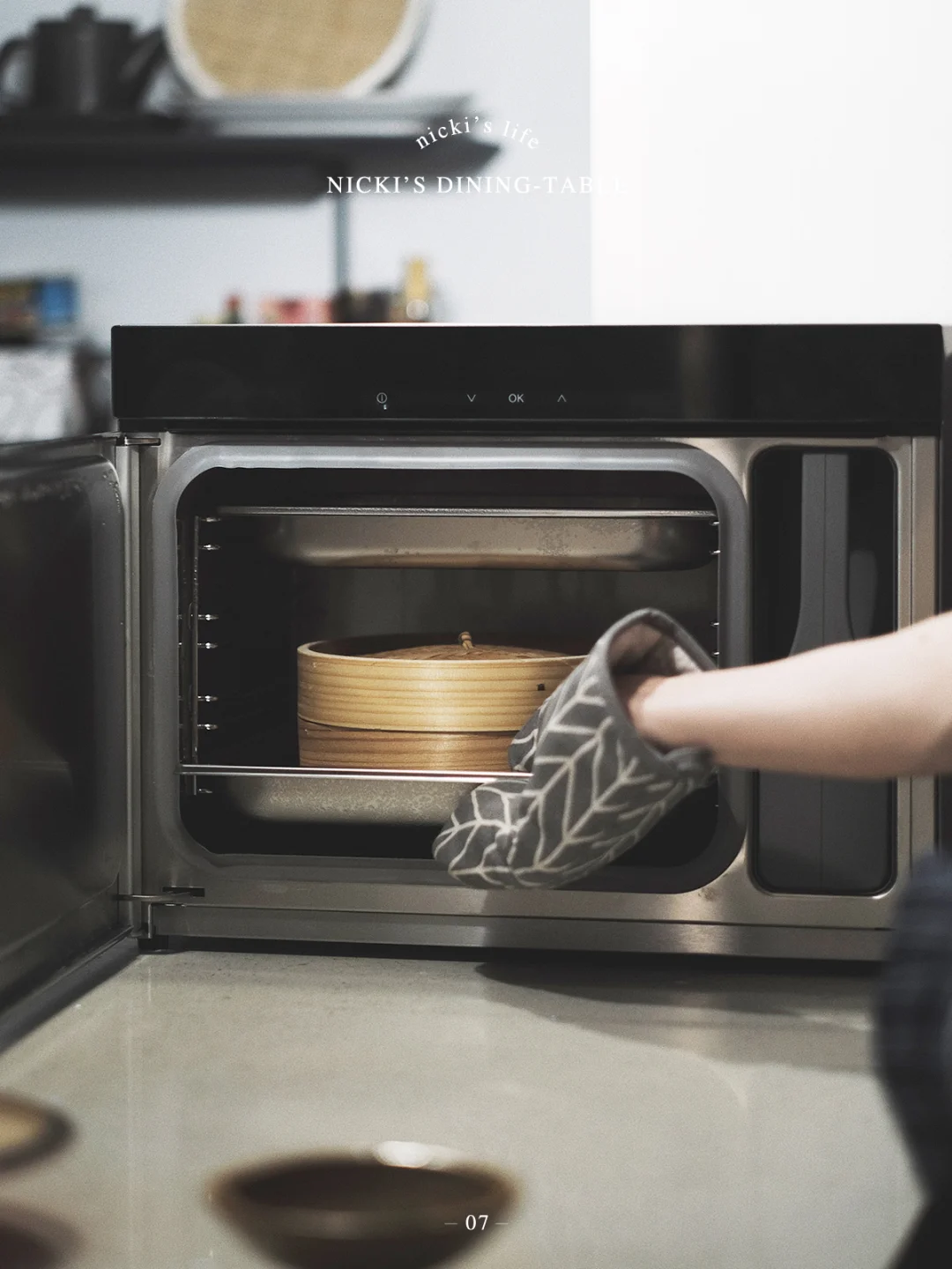 • 放入Miele独立式蒸炉中,100度蒸7分钟,miele是家中新入的大容量蒸箱,以前的蒸箱都不能容纳蒸笼的高度,这款可以妥妥将蒸笼放入其中,还能再同时蒸荷叶夹。它很适合中式烹饪,可以根据不同的食材精准控制时间和温度,不会串味,又能还原食材本味。