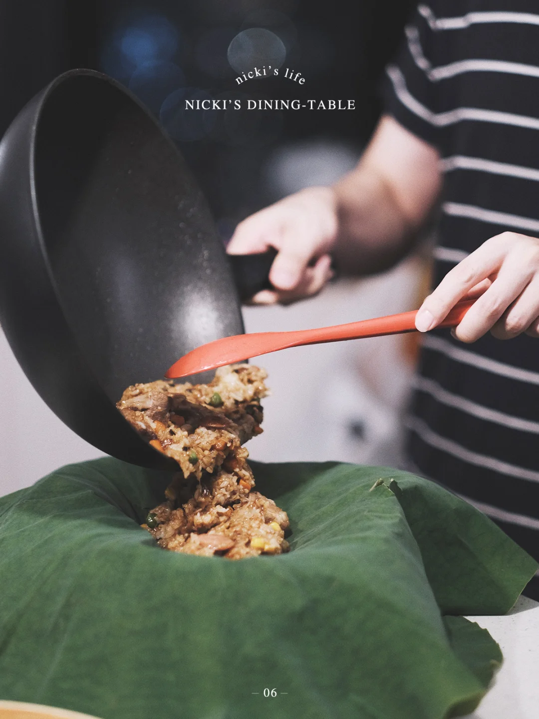 • 大米糯米3:1浸4小时左右煮熟,荷叶。