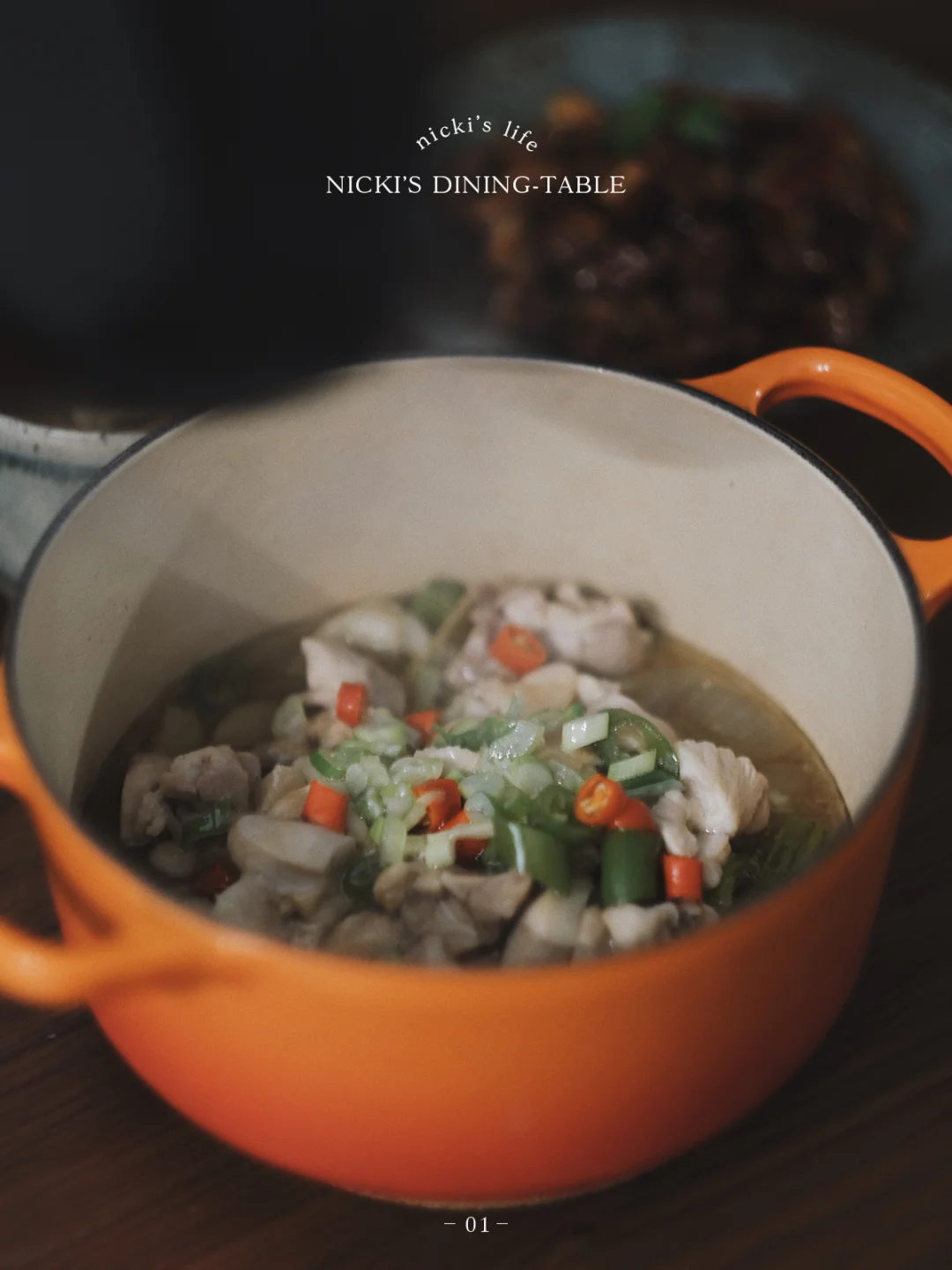 · 鸡肉到时间,开盖,淋上3勺蒸鱼豉油,撒上葱花,小米椒,淋上热油,满屋子葱香,就可以开动啦。