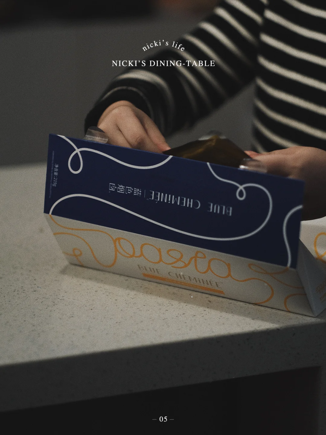 对于我下班到家就已经是8点的打工人来说,蓝色烟囱的意面简直是福音,我一开始以为里面只是有酱料包,没有想到竟然完整到连蒜香油,海盐,欧芹芝士碎都有,也超级适合想动手下厨的料理小白。