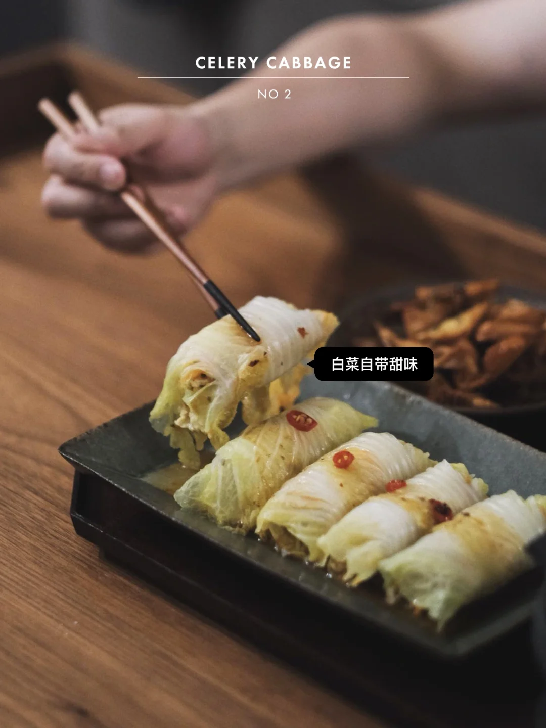 • 酱料:生抽2勺,水三分之一小碗,1勺辣椒酱,1个小米椒碎,在锅中煮开,淋在白菜卷上即可。