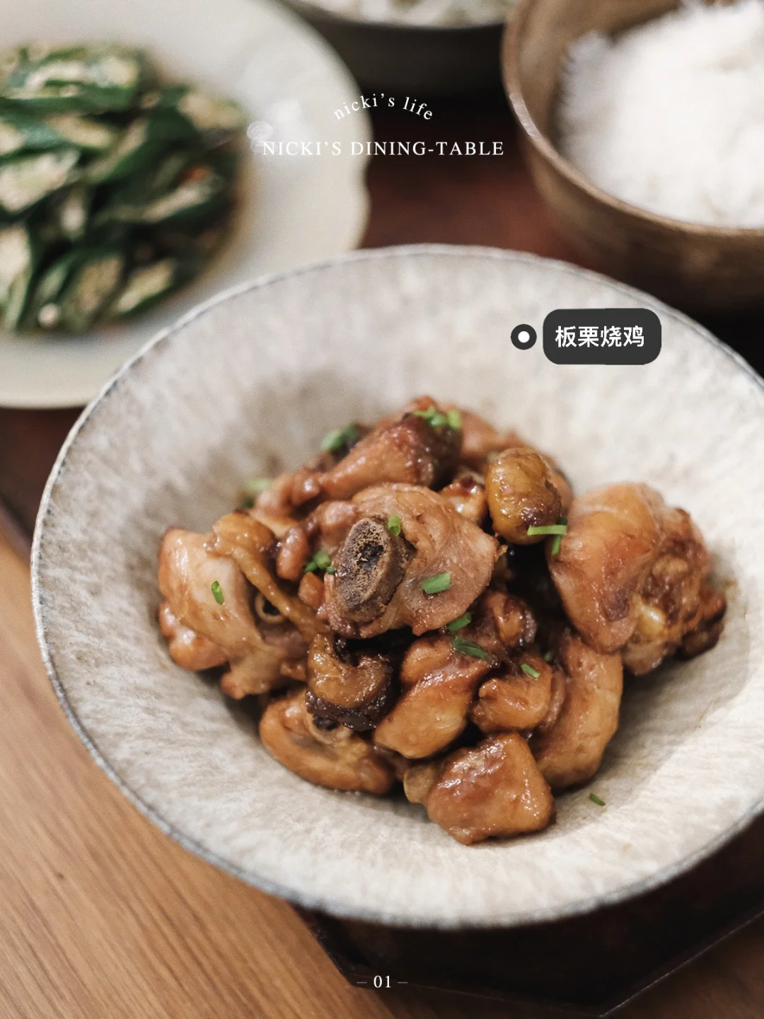 •锅中倒油,放入5粒大蒜煸炒出香味,倒入鸡块,炒至鸡块变熟后,放入栗子,加入3勺生抽,1勺老抽,冰糖,一碗水,盖上锅盖小火焖煮20分钟左右。