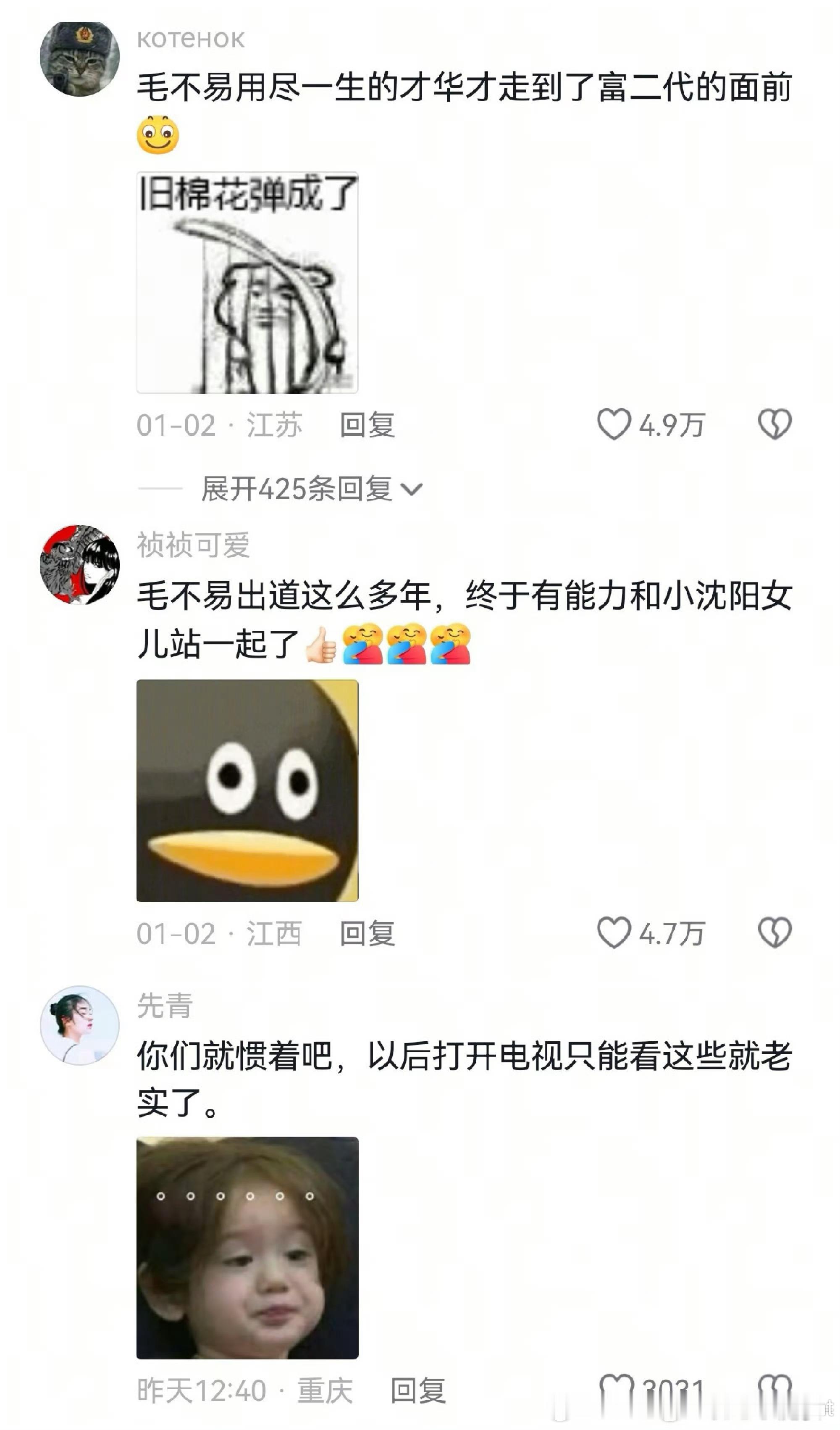 抖人说话还是狠,沈佳润一个星二代、明星哪需要网友来同情理解,别人有小沈阳托举,娱乐圈的路不知道多好走,没有实力还不能diss两句了吗