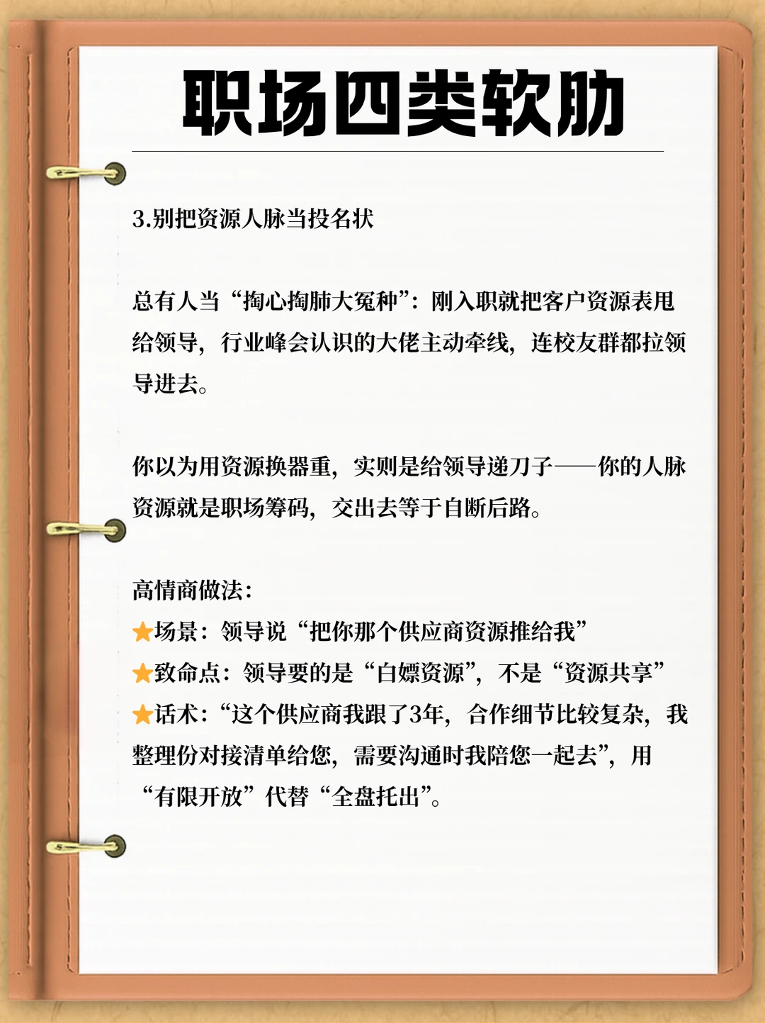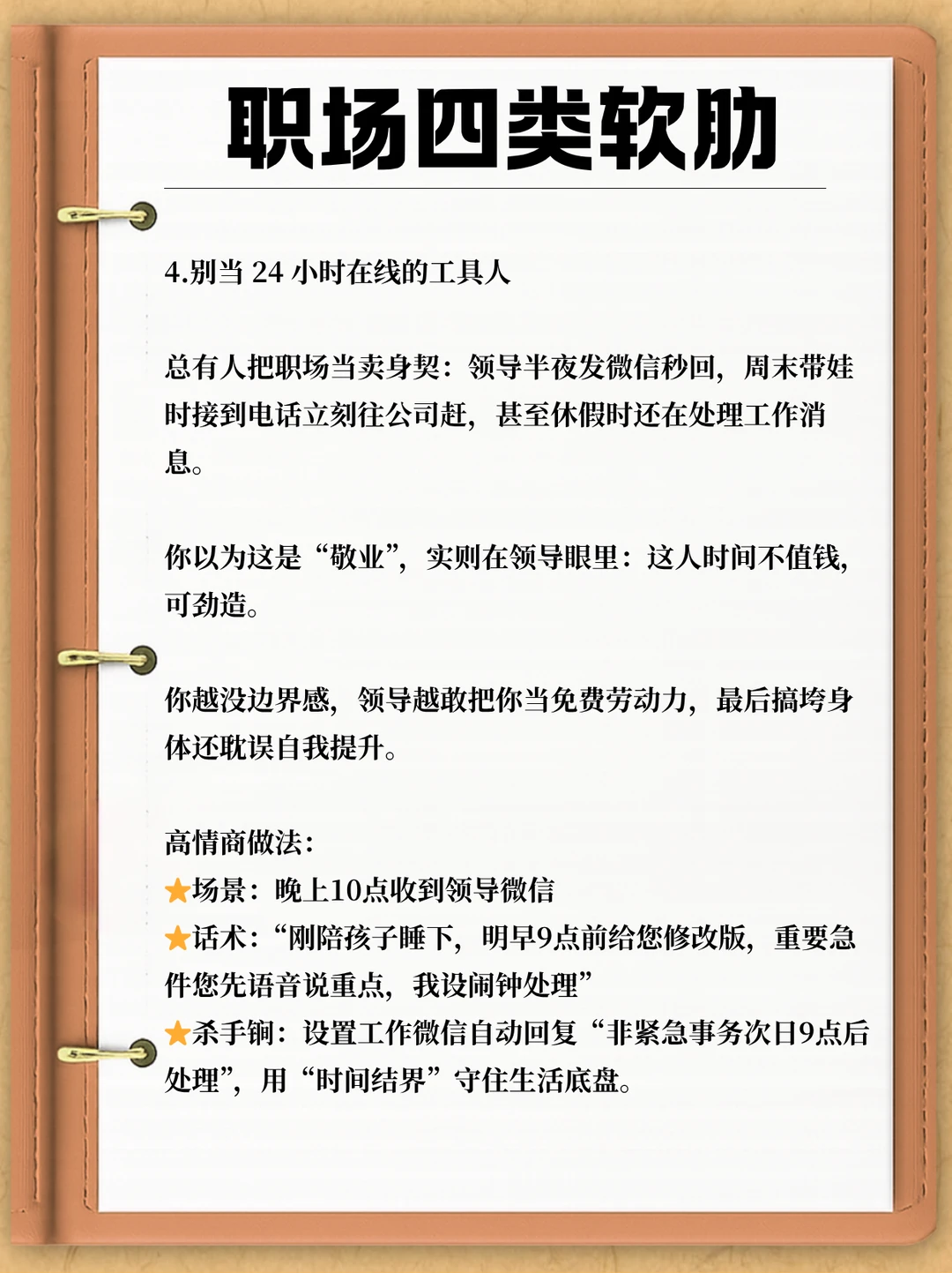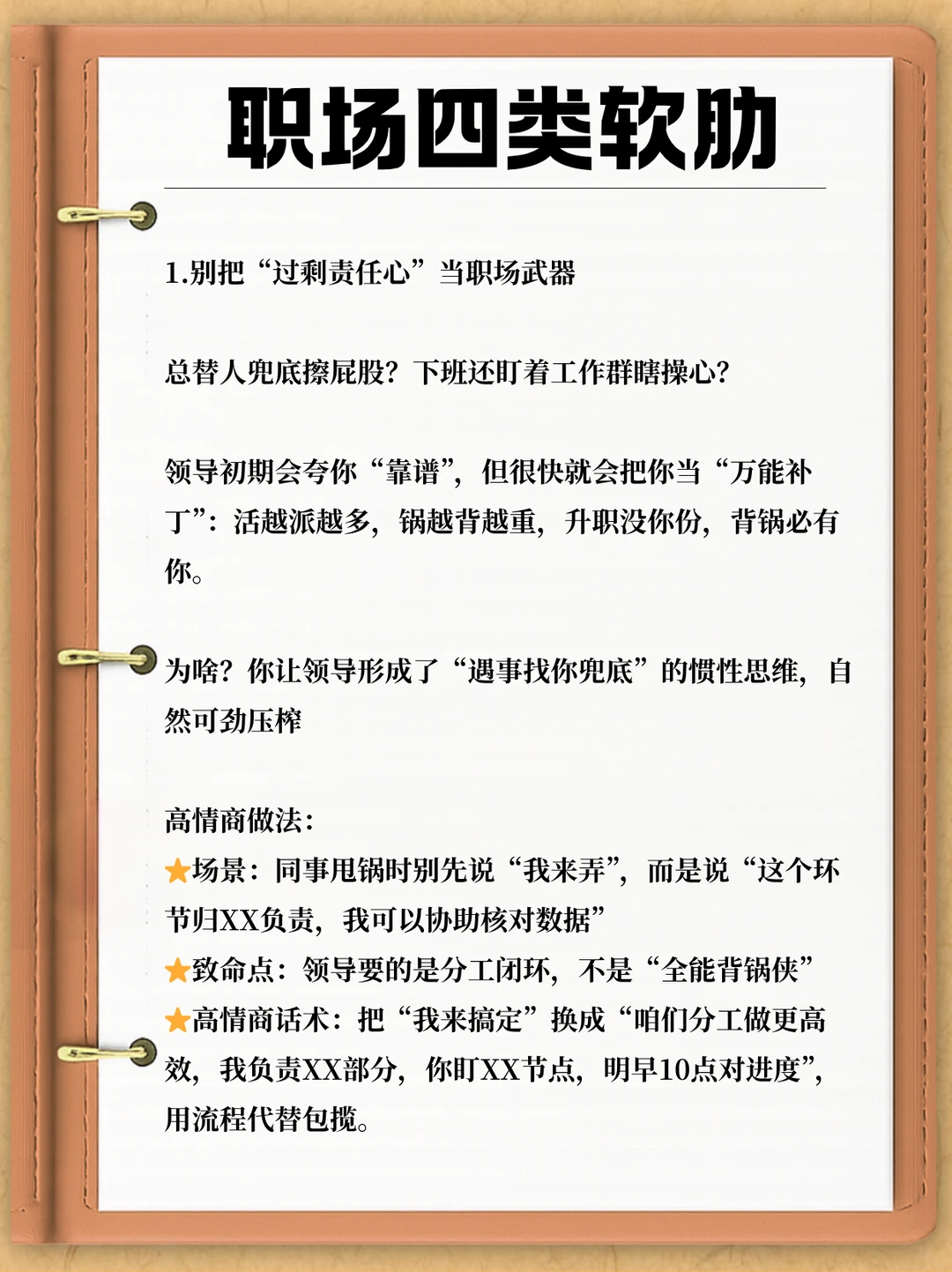 在职场,谁都想赢得领导赏识与信任,毕竟这是解锁晋升机会的关键钥匙。 可偏偏有人错把领导当 “树洞”,不经意间亮出底牌、暴露软肋,最后沦为被随意拿捏的职场工具人。 今儿就来戳破真相:这 4 类职场软肋一旦暴露,领导必定把你用废 ——
