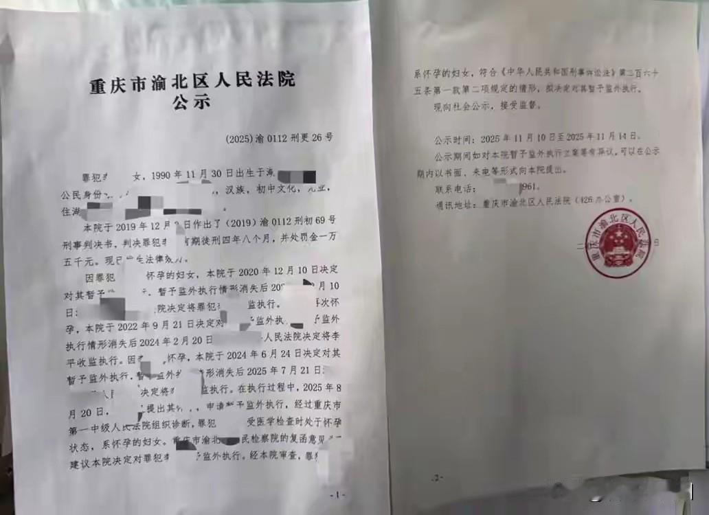 四年四次怀孕躲避坐牢?算盘打错了! 见过用怀孕当“护身符”的吗?重庆一女子被判刑四年八个月,结果四年里四次怀孕,次次成功申请监外执行,一天牢都没坐。这事儿在网上直接炸了锅。 “判刑四年八个月,却因四年内四次怀孕,四次暂予监外执行——重庆女子李某的操作,直接把网友看懵了!”从2020年到2025年,每次眼看要收监,她就曝出怀孕消息。 你说这是巧合还是精心策划?律师一句话点破天机。 我们先看看时间线。2019年,李某因犯罪被判四年八个月。按说该进监狱服刑了,可神奇的操作开始了:2020年第一次怀孕,顺利监外执行;此后在2022年、2024年、2025年,她又接连三次怀孕。 每次怀孕时间都卡在监外执行期限即将到期前。这让她至今一天牢都没坐过。 网上一下子炸了锅。有人说,监外执行的初衷是为了保护孕妇和婴儿的人道主义关怀,这是法律赋予的权利没错。可这个权利被用成了“免罪金牌”,味道就变了。 “四年四次怀孕,时间卡得这么准,真的是巧合吗?”网友的质疑不是没道理。如果人人都能靠怀孕来规避刑罚,那法律的威慑力何在?判了刑却不用坐牢,犯罪的成本是不是太低了? 咱们把话放这里:法律的人道主义,绝不应该成为某些人钻空子的“保护伞”。 律师给出了专业解读。根据《刑事诉讼法》,怀孕或正在哺乳自己婴儿的妇女可以暂予监外执行,这是司法温度。但法律也明确,如果查实属于‘恶意规避刑罚’,完全可以收监。 什么叫“恶意规避”?律师划重点:像这样“卡点怀孕”、没有实际抚养意愿、甚至虚构生育事实的行为,就是典型。 这话不是空口说白话。山西就曾有过“陈红案”,当事人也是连续怀孕逃避收监,最终被检察机关监督收监。四川的郎某案也是如此。这些先例说明,司法体系对这类行为是有判断和反制能力的。 那么问题来了:这位李某四次怀孕,到底是为了当母亲,还是把生育当成了工具? 人心里的秤,称得出轻重。 司法的温度,要给真正需要呵护的母亲与婴儿;但对于把生育当算计、把法律宽容当漏洞钻的行为,必须亮出法律的牙齿。这不只是惩罚个别人,更是守护每个人心中对公平的信任。 老铁们,你们觉得呢?这是对母性权益的合理利用,还是对法律尊严的公开挑战? 如果你是法官,面对这样的“循环操作”,会如何判决? 人心中的这杆秤,称得出‘爱’与‘算计’的分量。 评论区一起聊聊,点赞转发,让公平正义的声音被更多人听到!入监服刑 服刑年限 服刑老婆 缓刑减刑