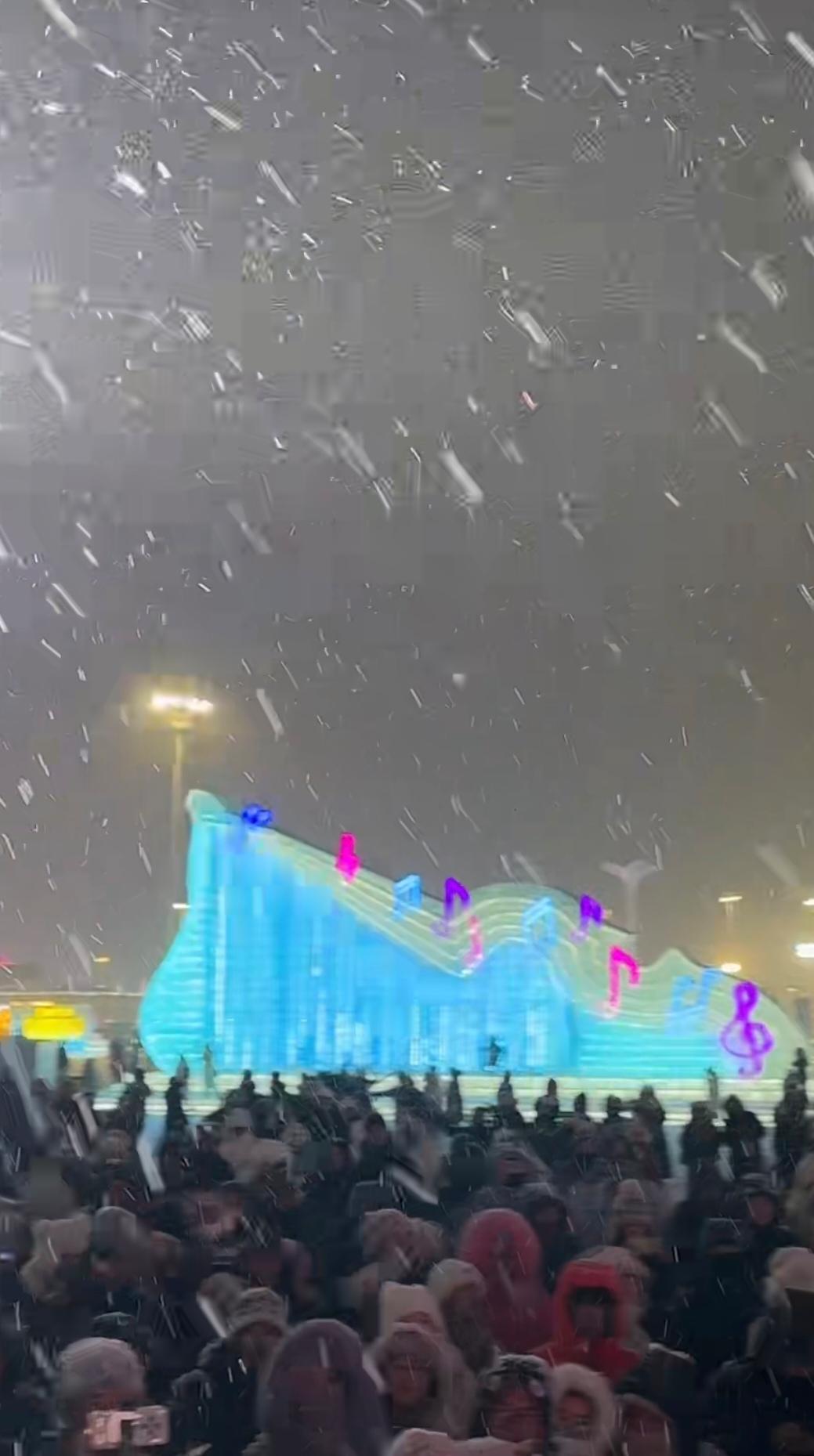 哈尔滨下雪了,昨天晚上的雪❄️格外的耀眼,尤其是冰雪大世界的雪,加上舞蹈演员的身