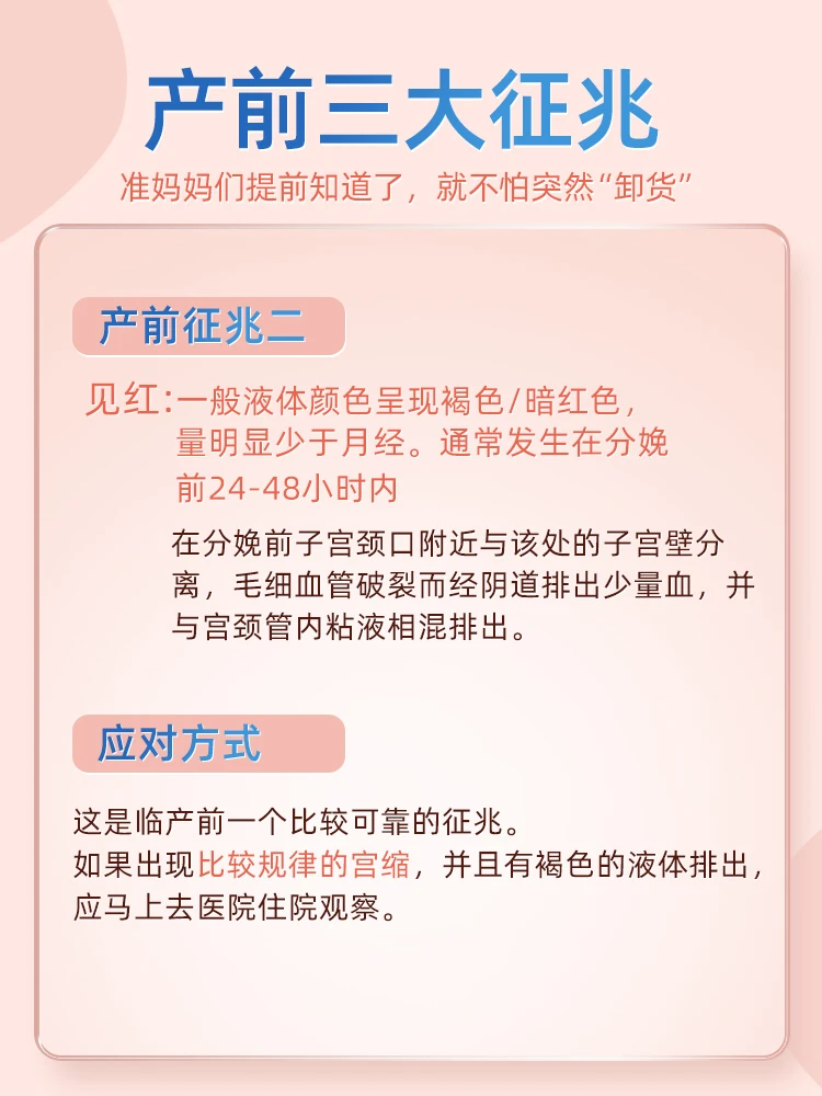 2⃣️ 见红:液体颜色呈褐色/暗红色,通常发生在分娩前24-48小时内;