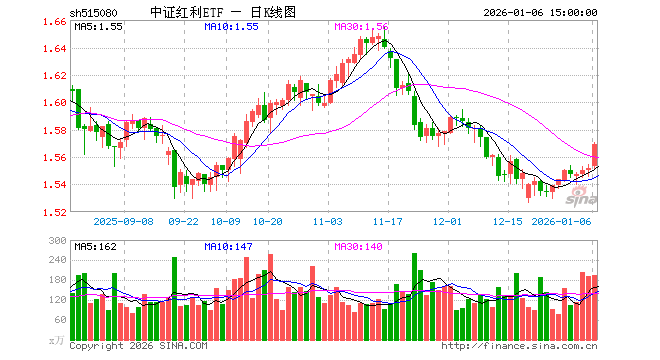 1月6日,中证红利ETF(515080)涨1.10%,成交额3.06亿元。当日份额减少2100.00万份,最新份额为55.65亿份,近20个交易日份额增加3.56亿份。最新资产净值计算值为87.47亿元。