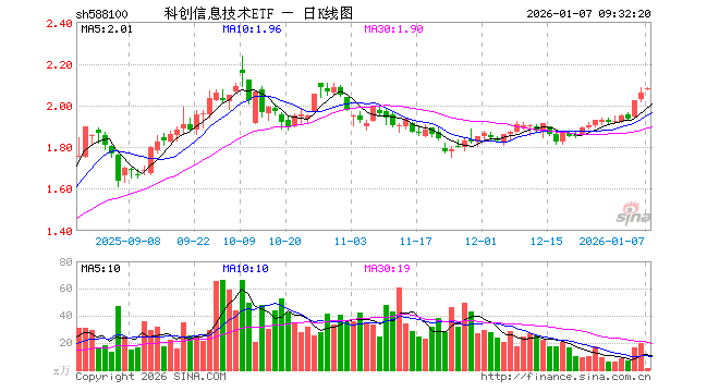 科创信息技术ETF(588100)业绩比较基准为上证科创板新一代信息技术指数收益率,管理人为嘉实基金管理有限公司,基金经理为张钟玉,成立(2022-05-18)以来回报为106.23%,近一个月回报为10.45%。