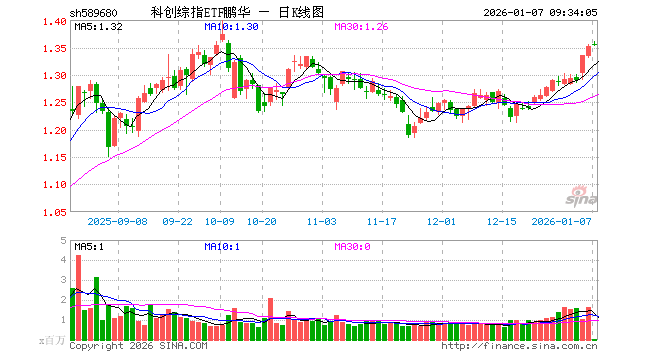 1月7日,科创综指ETF鹏华(589680)开盘涨0.30%,报1.356元。科创综指ETF鹏华(589680)重仓股方面,海光信息开盘涨0.00%,寒武纪跌0.95%,中芯国际涨0.00%,中微公司涨3.10%,澜起科技涨5.60%,百利天恒涨1.52%,金山办公跌0.21%,联影医疗涨0.75%,影石创新涨0.27%,芯原股份涨2.82%。