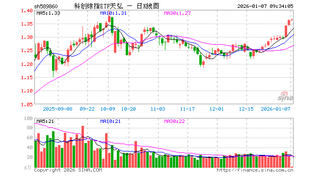 科创综指ETF天弘(589860)业绩比较基准为上证科创板综合指数收益率,管理人为天弘基金管理有限公司,基金经理为张戈,成立(2025-02-26)以来回报为36.21%,近一个月回报为9.33%。