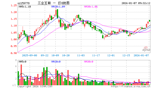 1月7日,工业互联ETF(159778)开盘涨0.98%,报1.139元。工业互联ETF(159778)重仓股方面,工业富联开盘跌1.00%,宁德时代跌0.28%,北方华创涨1.45%,兆易创新涨7.66%,汇川技术跌0.23%,豪威集团涨0.70%,科大讯飞涨0.04%,海康威视涨0.23%,亿纬锂能涨0.60%,比亚迪跌0.03%。