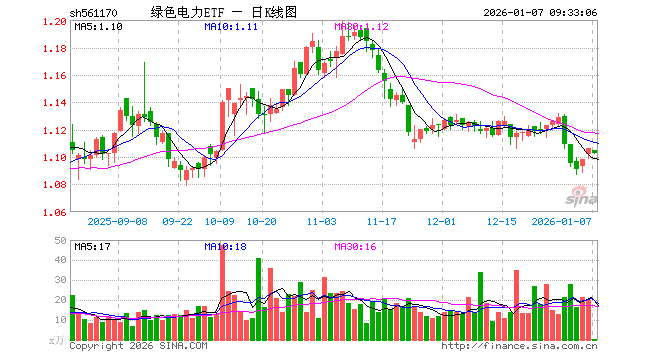 1月7日,绿色电力ETF(561170)开盘跌0.09%,报1.105元。绿色电力ETF(561170)重仓股方面,中国核电开盘涨0.00%,长江电力涨0.00%,三峡能源涨0.00%,国电电力跌0.20%,国投电力涨0.15%,华能国际跌0.27%,上海电力跌0.10%,川投能源涨0.07%,华电国际涨0.00%,浙能电力涨0.00%。