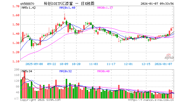 1月7日,科创50ETF汇添富(588870)开盘涨0.27%,报1.459元。科创50ETF汇添富(588870)重仓股方面,海光信息开盘涨0.00%,中芯国际涨0.00%,寒武纪跌0.95%,澜起科技涨5.60%,中微公司涨3.10%,联影医疗涨0.75%,金山办公跌0.21%,芯原股份涨2.82%,石头科技涨0.07%,传音控股跌0.36%。