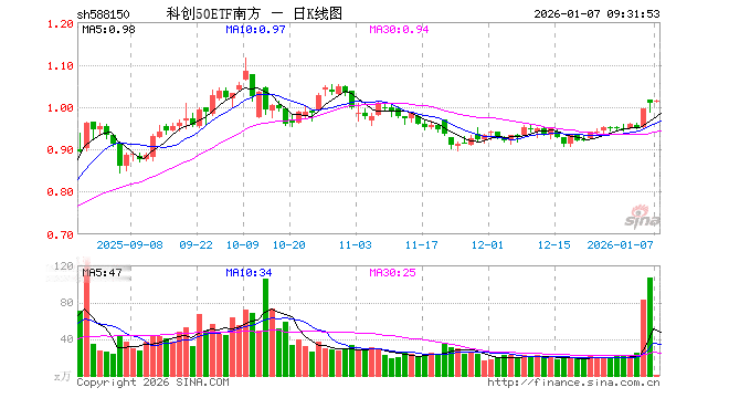 1月7日,科创50ETF南方(588150)开盘涨0.20%,报1.010元。科创50ETF南方(588150)重仓股方面,中芯国际开盘涨0.00%,海光信息涨0.00%,寒武纪跌0.95%,澜起科技涨5.60%,中微公司涨3.10%,联影医疗涨0.75%,金山办公跌0.21%,芯原股份涨2.82%,石头科技涨0.07%,传音控股跌0.36%。