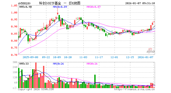 1月7日,科创50ETF基金(588180)开盘涨0.54%,报0.930元。科创50ETF基金(588180)重仓股方面,中芯国际开盘涨0.00%,海光信息涨0.00%,寒武纪跌0.95%,澜起科技涨5.60%,中微公司涨3.10%,联影医疗涨0.75%,金山办公跌0.21%,芯原股份涨2.82%,石头科技涨0.07%,传音控股跌0.36%。
