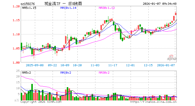 1月7日,现金流ETF汇添富(159276)开盘涨0.26%,报1.167元。现金流ETF汇添富(159276)重仓股方面,中国海油开盘跌1.14%,上汽集团跌0.19%,五粮液涨0.01%,格力电器涨0.00%,洛阳钼业涨1.01%,中国铝业跌0.07%,陕西煤业涨0.90%,上海电气涨0.00%,正泰电器涨0.14%,厦门国贸跌0.14%。
