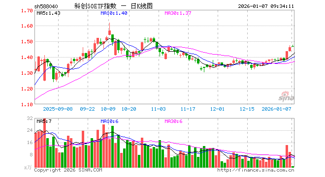 1月7日,科创50ETF指数(588040)开盘涨0.27%,报1.466元。科创50ETF指数(588040)重仓股方面,海光信息开盘涨0.00%,中芯国际涨0.00%,寒武纪跌0.95%,澜起科技涨5.60%,中微公司涨3.10%,联影医疗涨0.75%,金山办公跌0.21%,芯原股份涨2.82%,石头科技涨0.07%,传音控股跌0.36%。