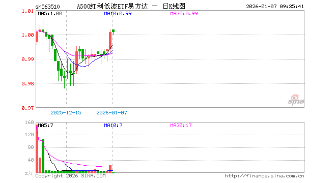 A500红利低波ETF易方达(563510)业绩比较基准为中证A500红利低波动指数收益率,管理人为易方达基金管理有限公司,基金经理为张泽峰,成立(2025-11-17)以来回报为0.30%,近一个月回报为0.39%。