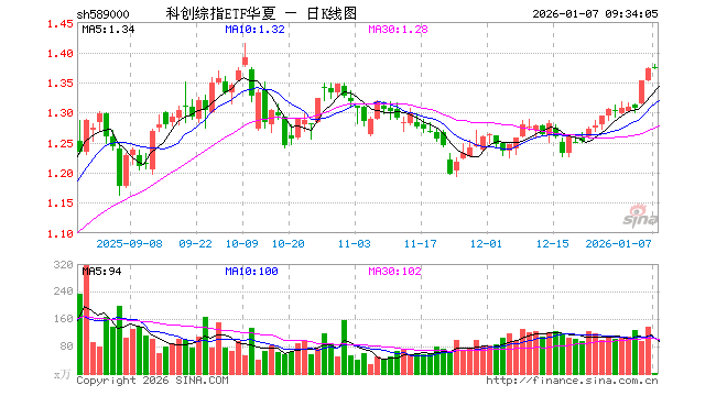 1月7日,科创综指ETF华夏(589000)开盘涨0.15%,报1.375元。科创综指ETF华夏(589000)重仓股方面,海光信息开盘涨0.00%,寒武纪跌0.95%,中芯国际涨0.00%,中微公司涨3.10%,澜起科技涨5.60%,百利天恒涨1.52%,金山办公跌0.21%,联影医疗涨0.75%,影石创新涨0.27%,传音控股跌0.36%。