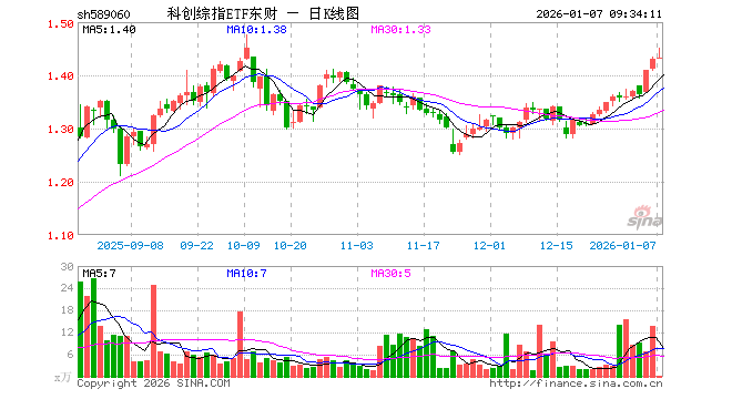 科创综指ETF东财(589060)业绩比较基准为上证科创板综合价格指数收益率,管理人为东财基金管理有限公司,基金经理为吴逸,成立(2025-03-19)以来回报为43.35%,近一个月回报为9.26%。