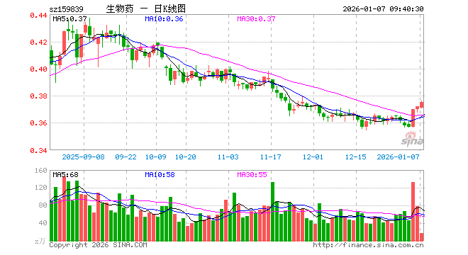 1月7日,生物医药ETF汇添富(159839)开盘跌0.27%,报0.371元。生物医药ETF汇添富(159839)重仓股方面,药明康德开盘涨0.03%,长春高新涨0.06%,复星医药跌0.26%,康龙化成涨0.00%,上海莱士涨0.00%,泰格医药涨0.00%,百利天恒涨1.52%,甘李药业跌0.61%,爱美客跌0.38%,智飞生物跌0.26%。