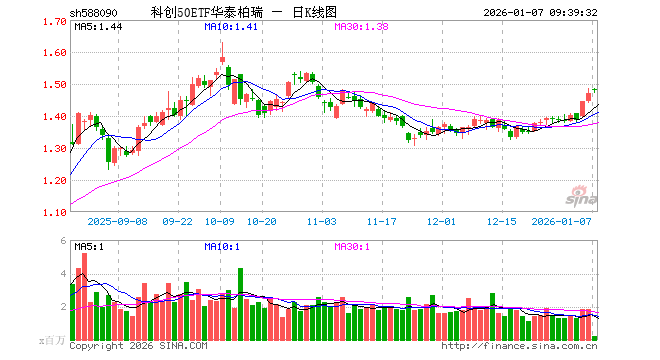 1月7日,科创50ETF华泰柏瑞(588090)开盘涨0.75%,报1.482元。科创50ETF华泰柏瑞(588090)重仓股方面,中芯国际开盘涨0.00%,海光信息涨0.00%,寒武纪跌0.95%,澜起科技涨5.60%,中微公司涨3.10%,联影医疗涨0.75%,金山办公跌0.21%,芯原股份涨2.82%,石头科技涨0.07%,传音控股跌0.36%。