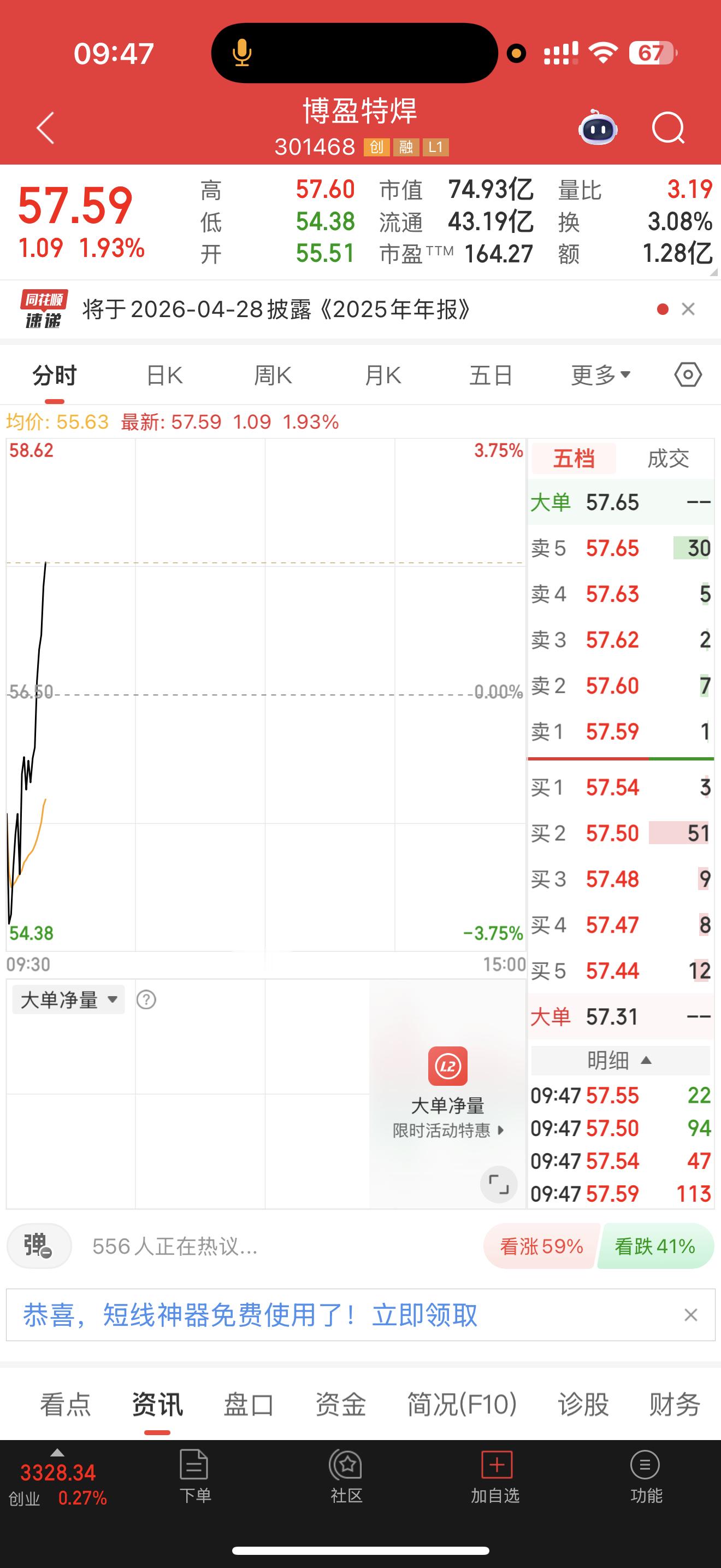 301468博盈特焊开始起飞,准备做好扶稳,来波评论点赞,继续大涨有在车上的兄弟