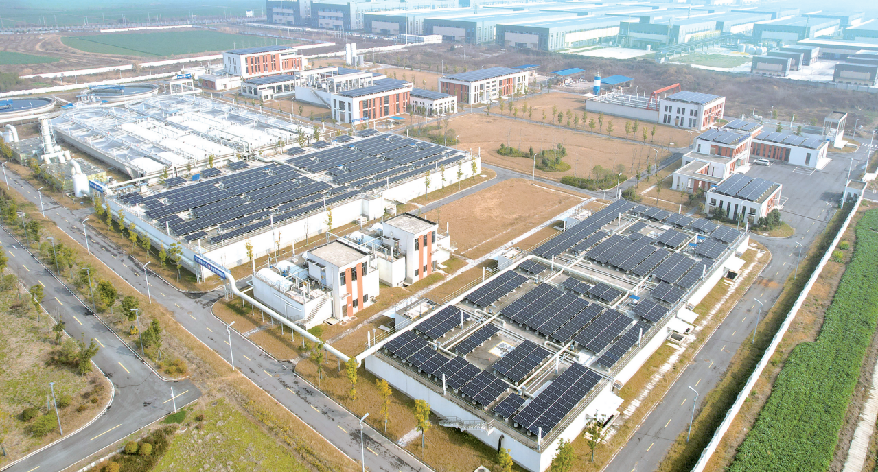 观南路污水处理厂不仅采用国际先进处理工艺实现污染物高效去除,更凭借绿电驱动模式成为全市践行“双碳”目标的标志性项目。(记者肖琦通讯员赵曼妮刘自豪摄)