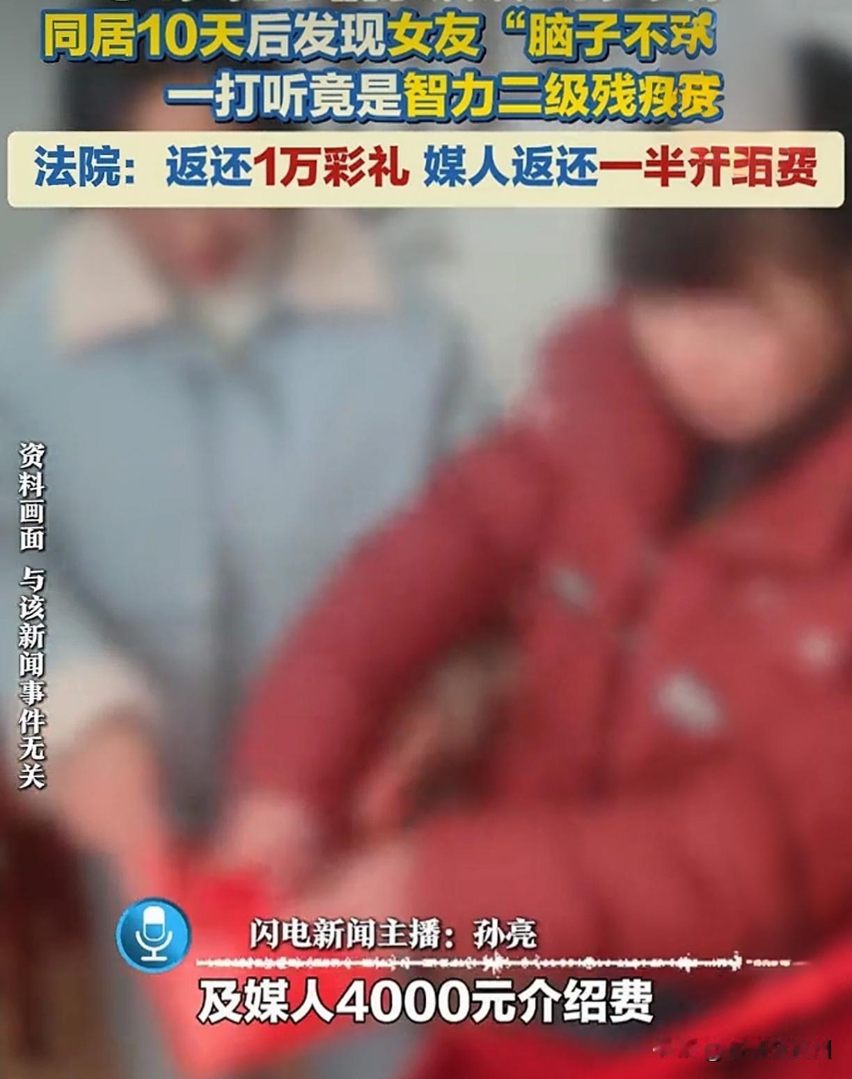 同居10天就闹翻!付2万彩礼发现新娘是智力残疾,法院判退钱,媒人还栽了! 刚同