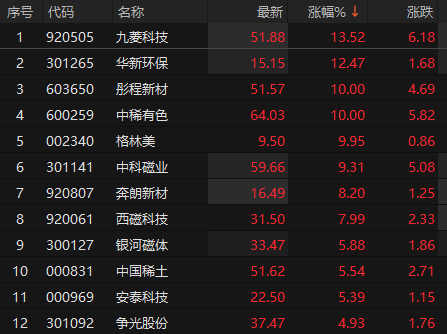 稀土永磁概念股震荡拉升 中稀有色涨停