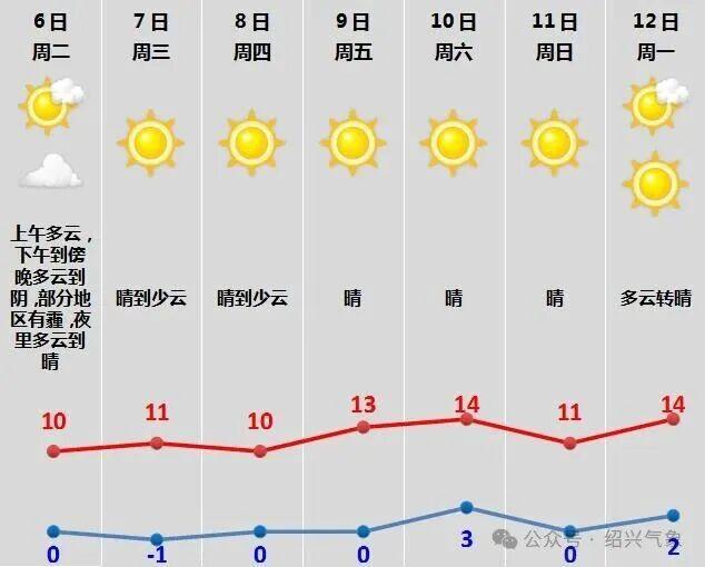 近期绍兴市受弱冷空气频繁影响,气温小幅波动,今晨有冰冻现象。受高空冷平流(高空中从冷区吹向暖区的气流)和辐射降温影响,未来几天早晨的最低气温仍会维持在低位:全省大部地区最低气温约0℃,山区则低至-5℃~-3℃,还会有持续冰冻现象。