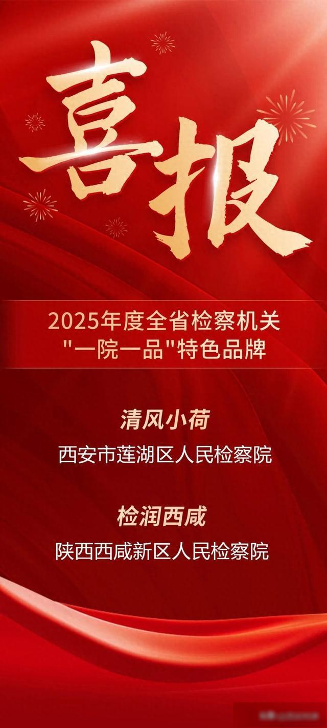 近日,陕西省人民检察院组织开展了全省检察机关“一院一品”典型事例评选,西安市检察机关2个品牌获评2025年度全省检察机关特色品牌。