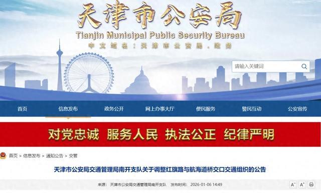 天津市公安局交通管理局南开支队关于调整红旗路与航海道桥交口交通组织的公告