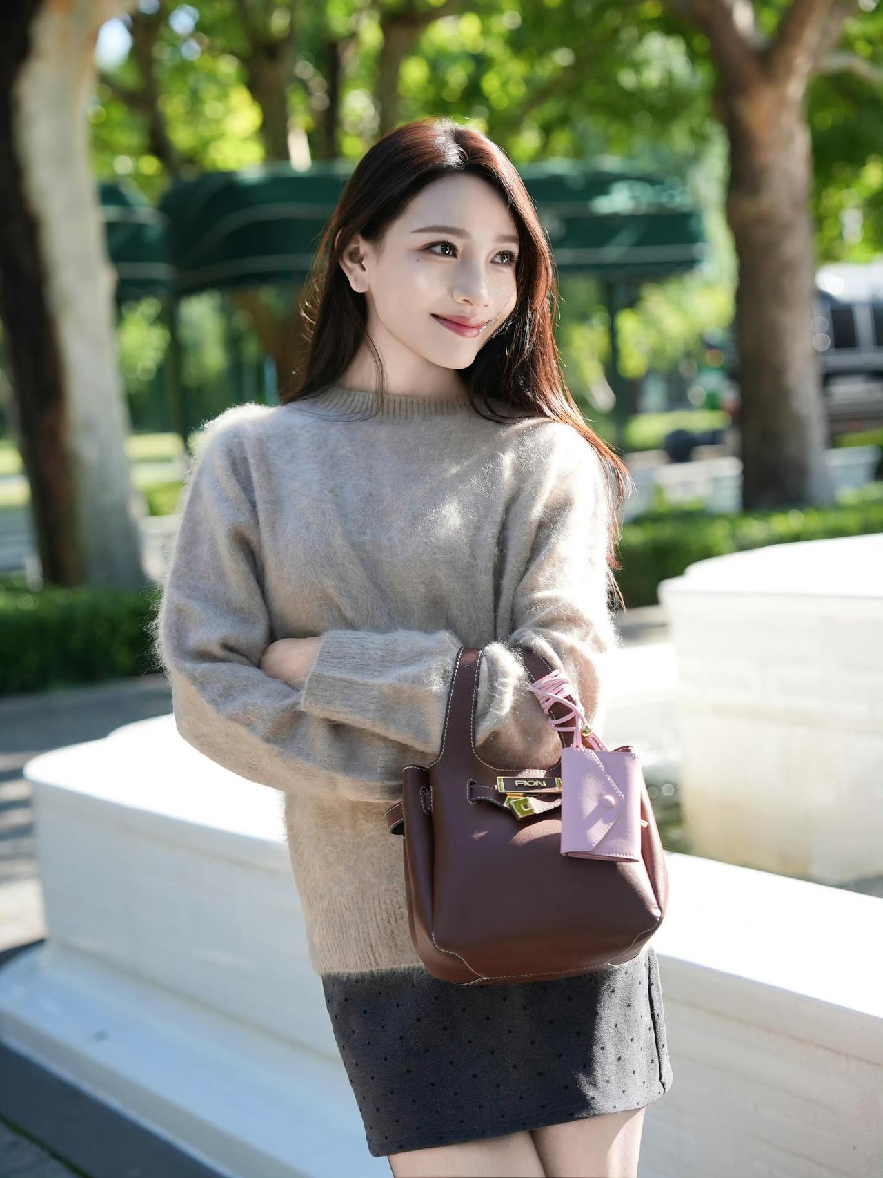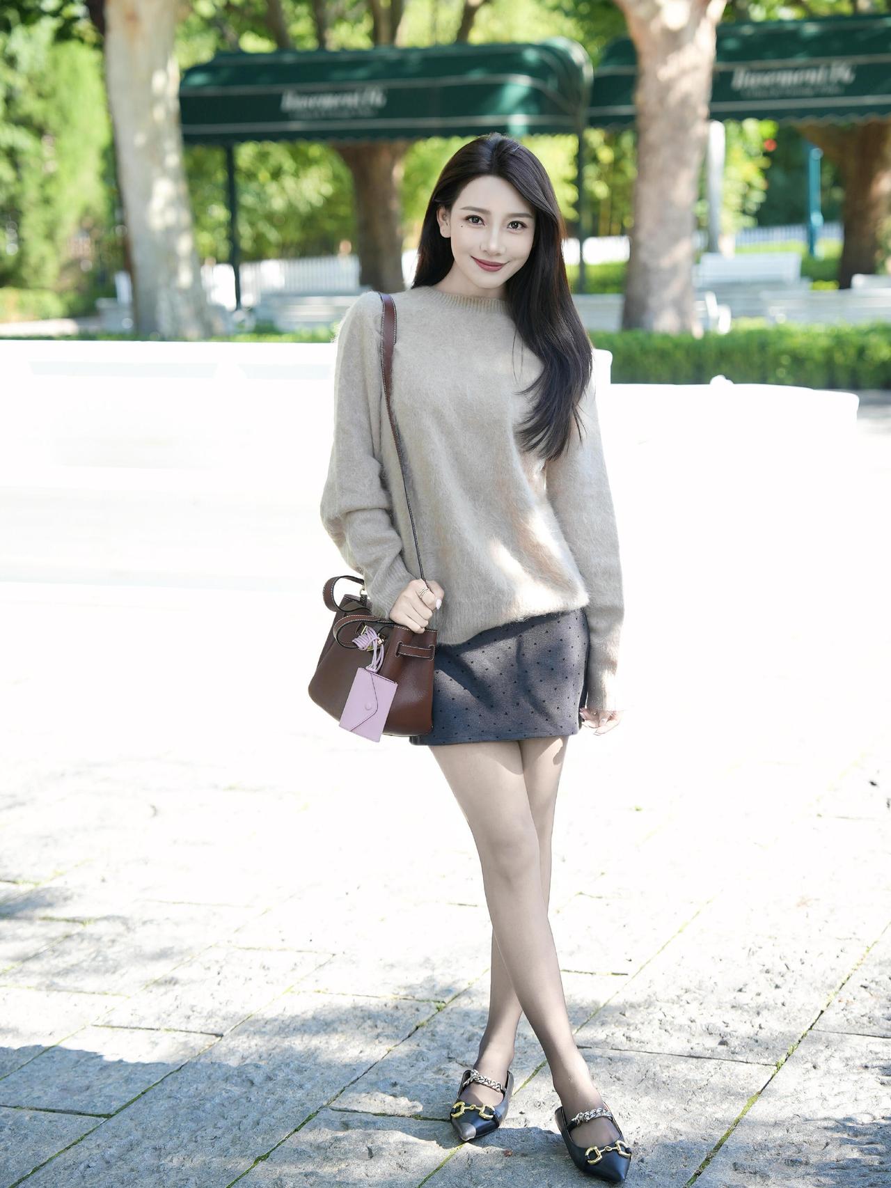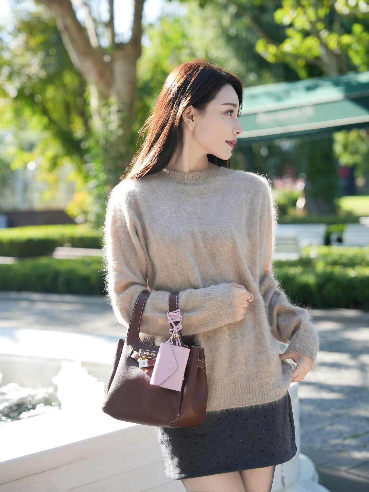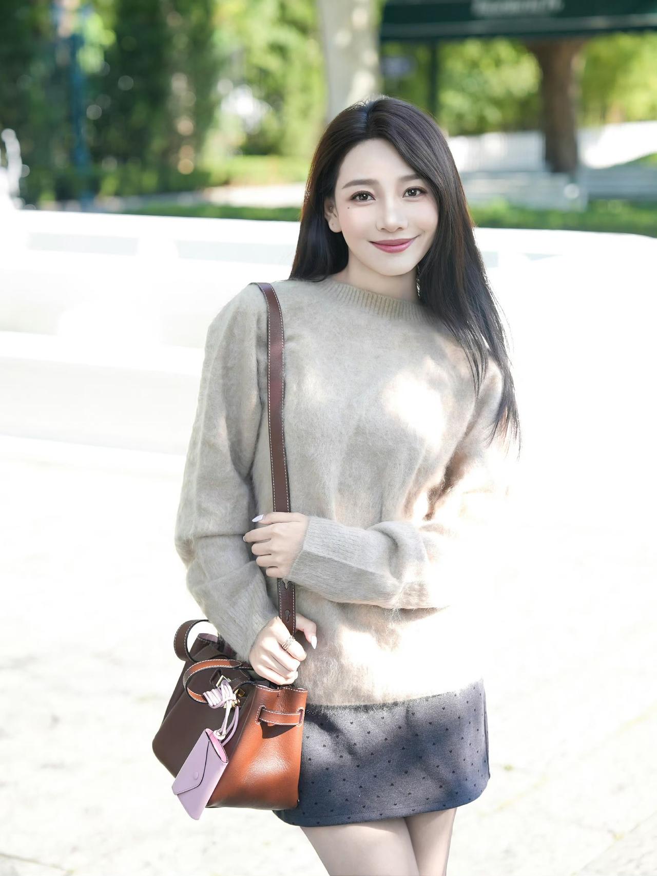 这套穿搭是温柔松弛的浅棕调秋日轻熟风,把软糯质感和精致细节融合得很舒服。浅棕毛绒毛衣自带秋日温柔感,宽松版型营造松弛氛围;搭配波点短裙,注入轻熟甜美元素。 搭配黑金扣单鞋+棕调手提包强化轻奢调性,粉色挂饰则为柔和造型增添亮眼细节,充分展现穿着者温柔松弛的秋日魅力。奶茶棕毛衣穿搭 浅棕色系穿搭 棕色系毛衣 有哪些女生日常好看穿搭可以借鉴