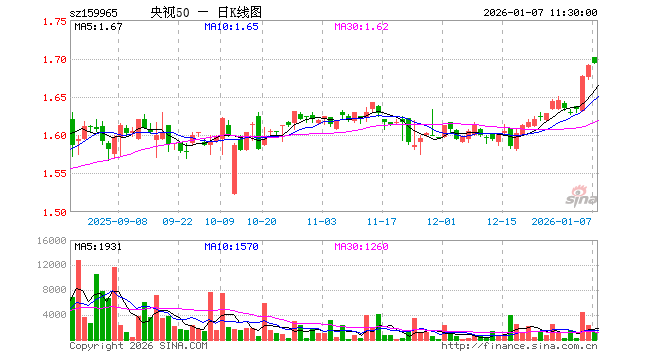 央视50ETF(159965)业绩比较基准为央视财经50指数收益率,管理人为国联基金管理有限公司,基金经理为陈薪羽、杜超,成立(2019-03-19)以来回报为69.34%,近一个月回报为5.38%。