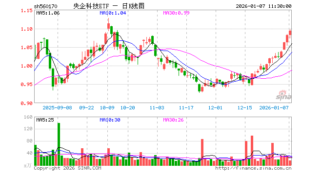1月7日,截止午间收盘,央企科技ETF(560170)涨1.02%,报1.093元,成交额1697.86万元。央企科技ETF(560170)重仓股方面,海康威视截止午盘跌0.56%,深南电路涨3.83%,长电科技涨1.93%,中航沈飞跌1.75%,中航光电涨0.86%,航发动力涨3.34%,澜起科技涨1.82%,光迅科技涨3.31%,中芯国际跌1.23%。