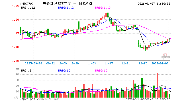 1月7日,截止午间收盘,央企红利ETF广发(560700)跌0.09%,报1.127元,成交额673.37万元。央企红利ETF广发(560700)重仓股方面,中远海控截止午盘涨0.00%,中材科技跌0.27%,鲁西化工跌1.81%,中粮糖业跌1.04%,中国神华跌0.07%,宝钢股份跌0.68%,中国石化跌1.29%,中国外运涨0.16%,亚普股份跌0.46%,新钢股份涨1.54%。