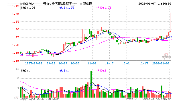 1月7日,截止午间收盘,央企现代能源ETF(561790)涨0.94%,报1.290元,成交额250.90万元。央企现代能源ETF(561790)重仓股方面,长江电力截止午盘跌0.40%,国电南瑞涨0.77%,中国核电涨1.94%,中国铝业涨1.22%,三峡能源跌0.24%,中国电建涨0.56%,国电电力涨0.60%,云铝股份跌0.72%,中国稀土涨7.56%,中国海油跌4.03%。