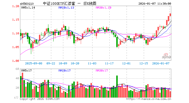 1月7日,截止午间收盘,中证1000ETF汇添富(560110)涨0.77%,报1.171元,成交额1461.93万元。中证1000ETF汇添富(560110)重仓股方面,华虹公司截止午盘涨2.83%,和而泰跌3.51%,欧菲光跌0.99%,银轮股份跌2.16%,剑桥科技涨1.67%,方正科技涨8.49%,东芯股份涨5.55%,香农芯创涨5.55%,安集科技涨16.98%,科华数据涨1.46%。