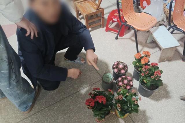 多盆用于装饰的多肉、长寿花盆栽被盗