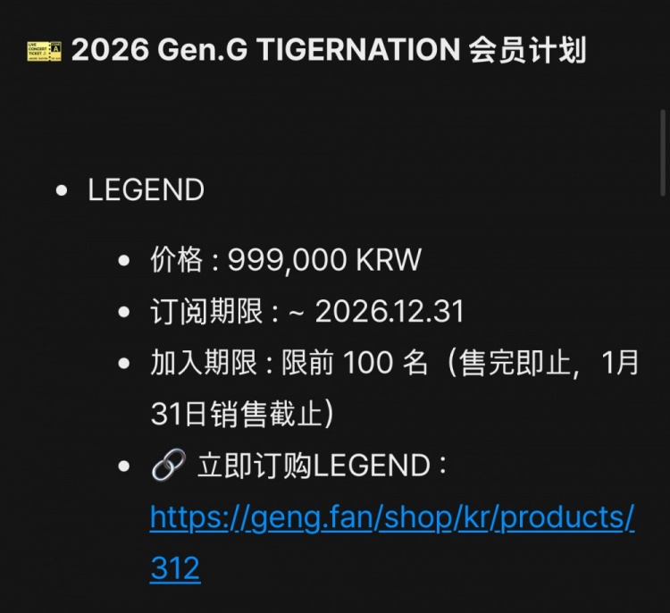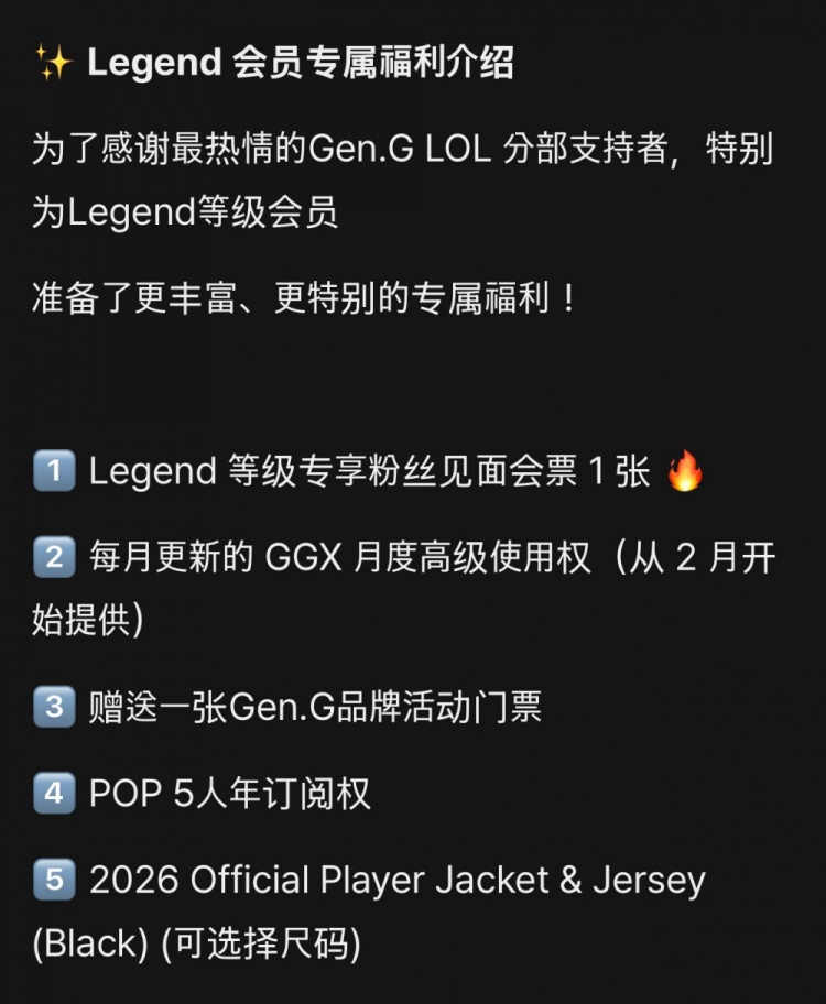 GEN POP传奇会员售价约4820元:专享粉丝见面会门票和队服等特权