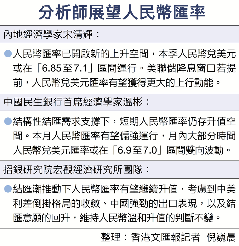 内地经济学家宋清辉分析,随着中国逆周期调节政策的显效,包括制造业、消费等在内的宏观数据展现出一定韧性,中国经济向好预期的增强,为人民币走强提供了坚实的底层支撑。另一方面,岁末年初企业进入结汇高峰期,较活跃的结汇盘直接推动人民币兑美元汇率走强。此外,年初港股和A股均录得“开门红”,更多长线外资增配中国资产,资本项下资金净流入同样利好人民币汇率。