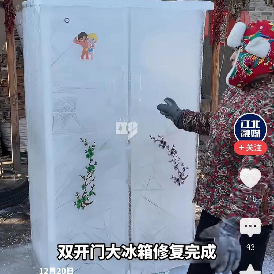 东北人手搓冰冰箱爆火, 0耗能还玩出花式造型? 这才是冬日里的浪漫巧思!” 双开门、滑盖、翻盖款式一应俱全,不用插电还能天然保鲜,东北人用冰块打造的冰箱,把冬日的寒冷玩成了生活乐趣。 没有复杂的工艺,全靠手搓冰砖拼接,再画上喜庆的图案,冰冷的冰块瞬间变成充满烟火气的家居好物。 南方人靠电器保鲜,东北人靠自然天赋造冰箱,这不是简单的“就地取材”,而是东北人对生活的热爱与脑洞。 在天寒地冻的东北,人们总能从自然里找到生活的小妙招,把艰苦的环境变成趣味满满的创意舞台,这份乐观比冰冰箱本身更打动人。 生活的智慧从来不在昂贵的物件里,而在用心发现的小美好中。 你觉得东北人这手搓冰冰箱,最想尝试哪种款式?手工冰箱 冰盒冰箱 手工冰箱特 冰箱自制冰盒 手搓大冰箱 冰厨冰箱 手工搓冰