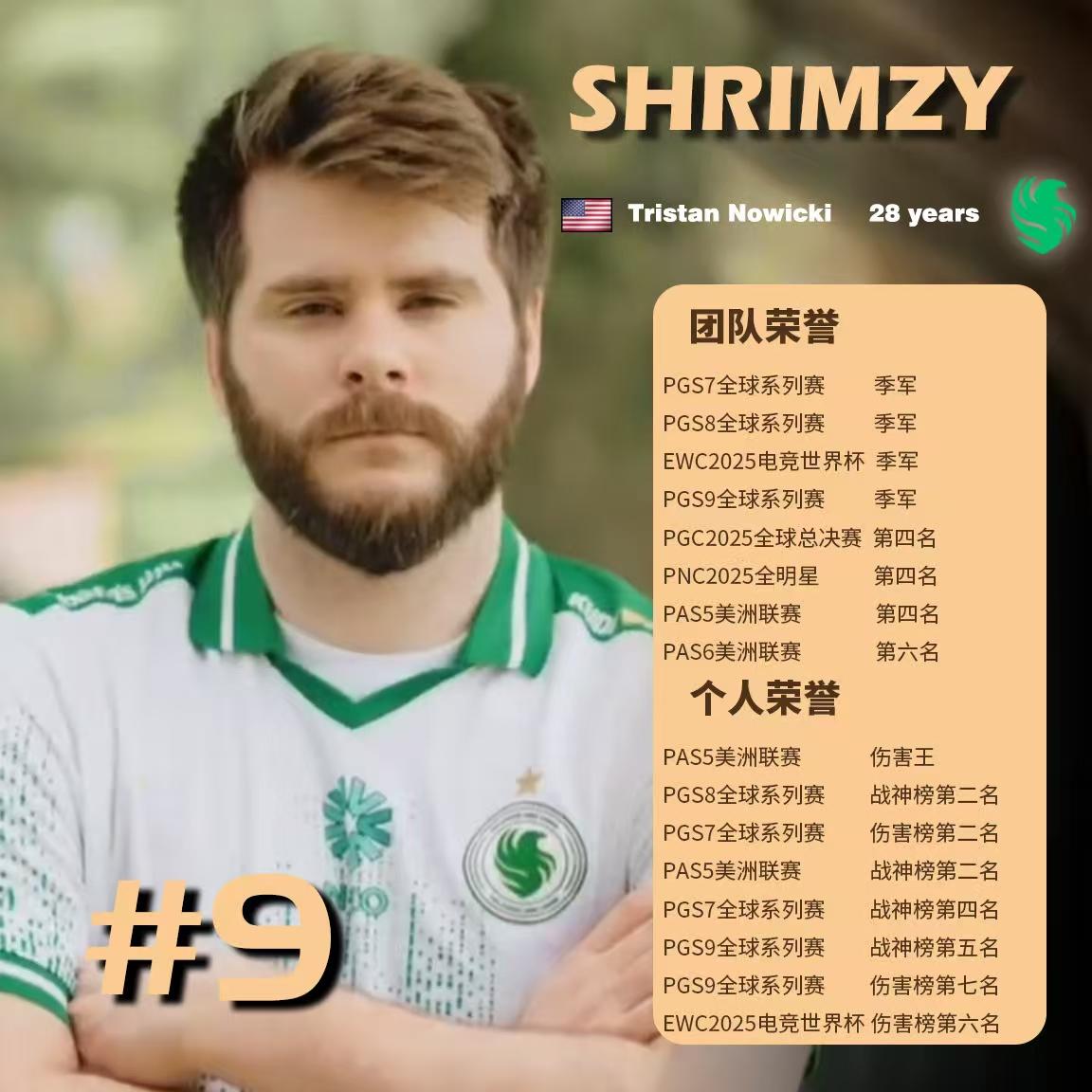 接着,PGS7PGS8EWC2025PGS9赛事中均拿到了季军的成绩,Shrimzy的个人数据和表现均很稳定且亮眼