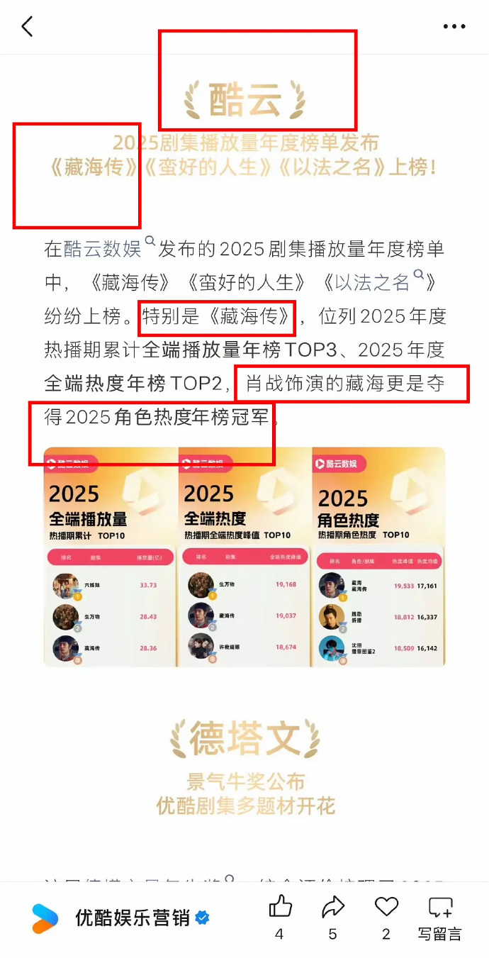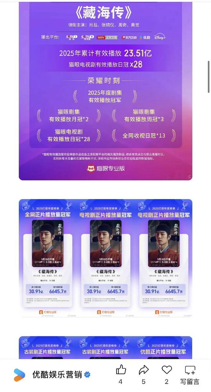 优酷发布2025年终总结 好多的肖战《藏海传》