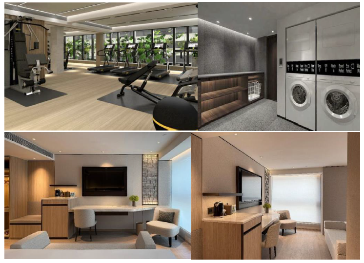 宝轩酒店及公寓(中环)楼高19层,酒店位于1楼至4楼,设有44间客房,包含行政套房、露台房及家庭房等多种房型。配备健身室、餐厅与洗衣房等住客服务设施,为旅客及住客提供一站式的入住体验。5楼至18楼则为服务式公寓,提供共112间套房。建筑面积由551至1,575平方尺不等,面向干诺道中单位更坐拥维港景致。租约期更可弹性选择,全方位满足不同旅客的需求。