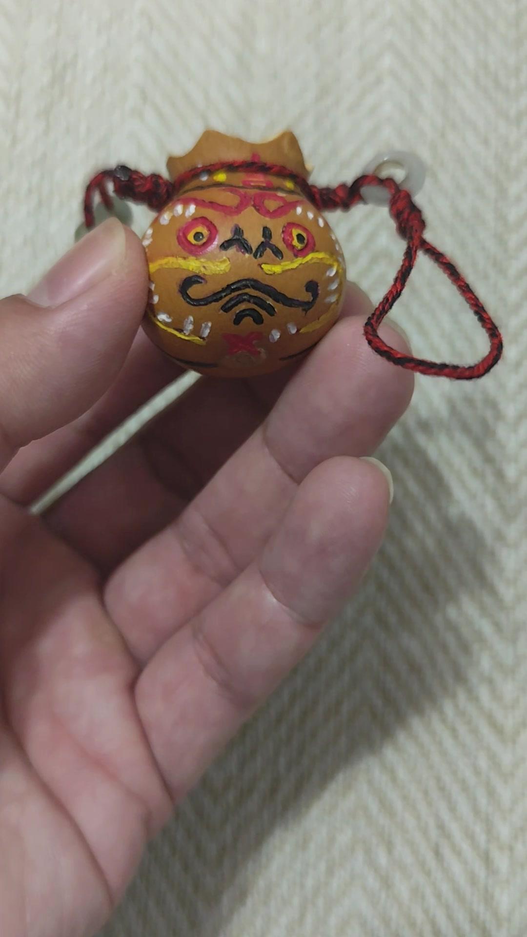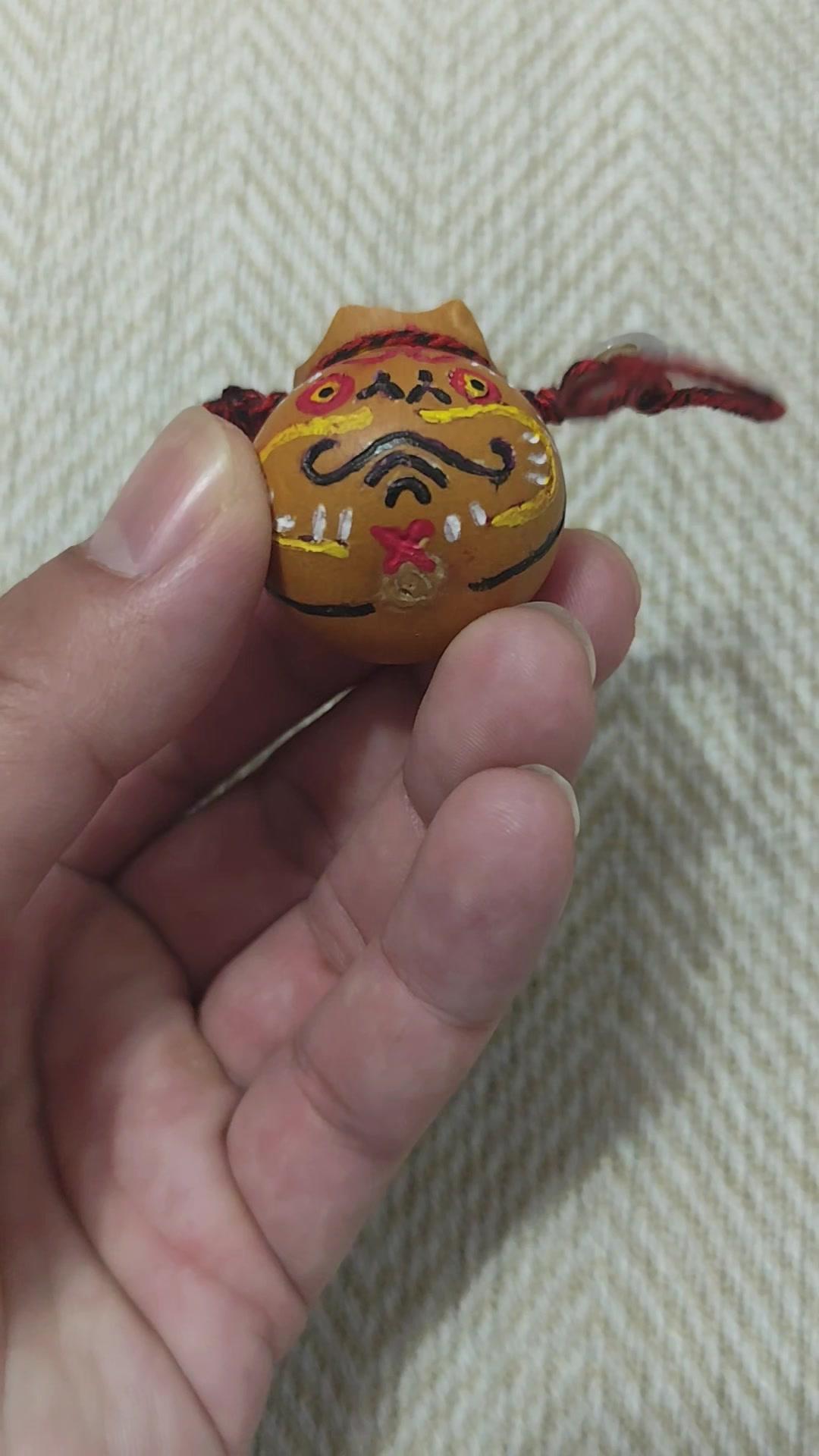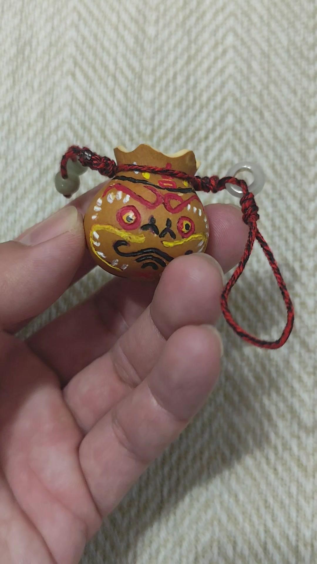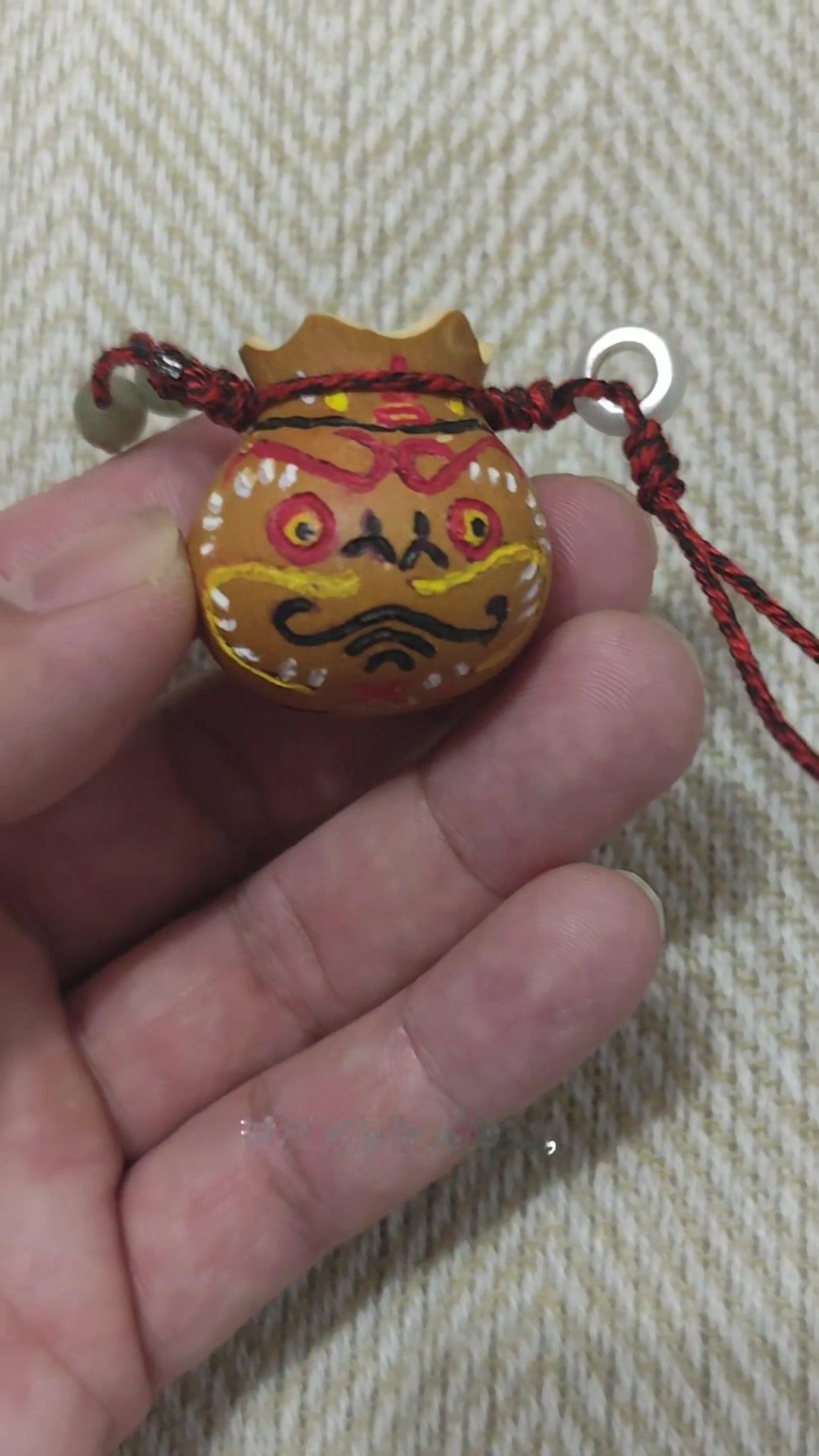 葫芦选的是钱袋品种,形状特别讨喜,肚子鼓鼓的像个小元宝。最戳我的是上面的手工雕刻,彩色虎头形象栩栩如生,每一笔都透着用心。背面还刻了“顺”字,寓意特别好,挂家里能让人安心。 配珠用的是翡翠,绿色的珠子衬着葫芦的颜色,整体看着很和谐。最难得的是纯手工打造,所以每个虎头的样子都不一样,摆在家里绝对不会撞款,独特感拉满~