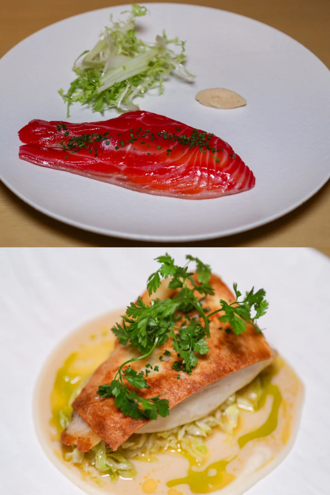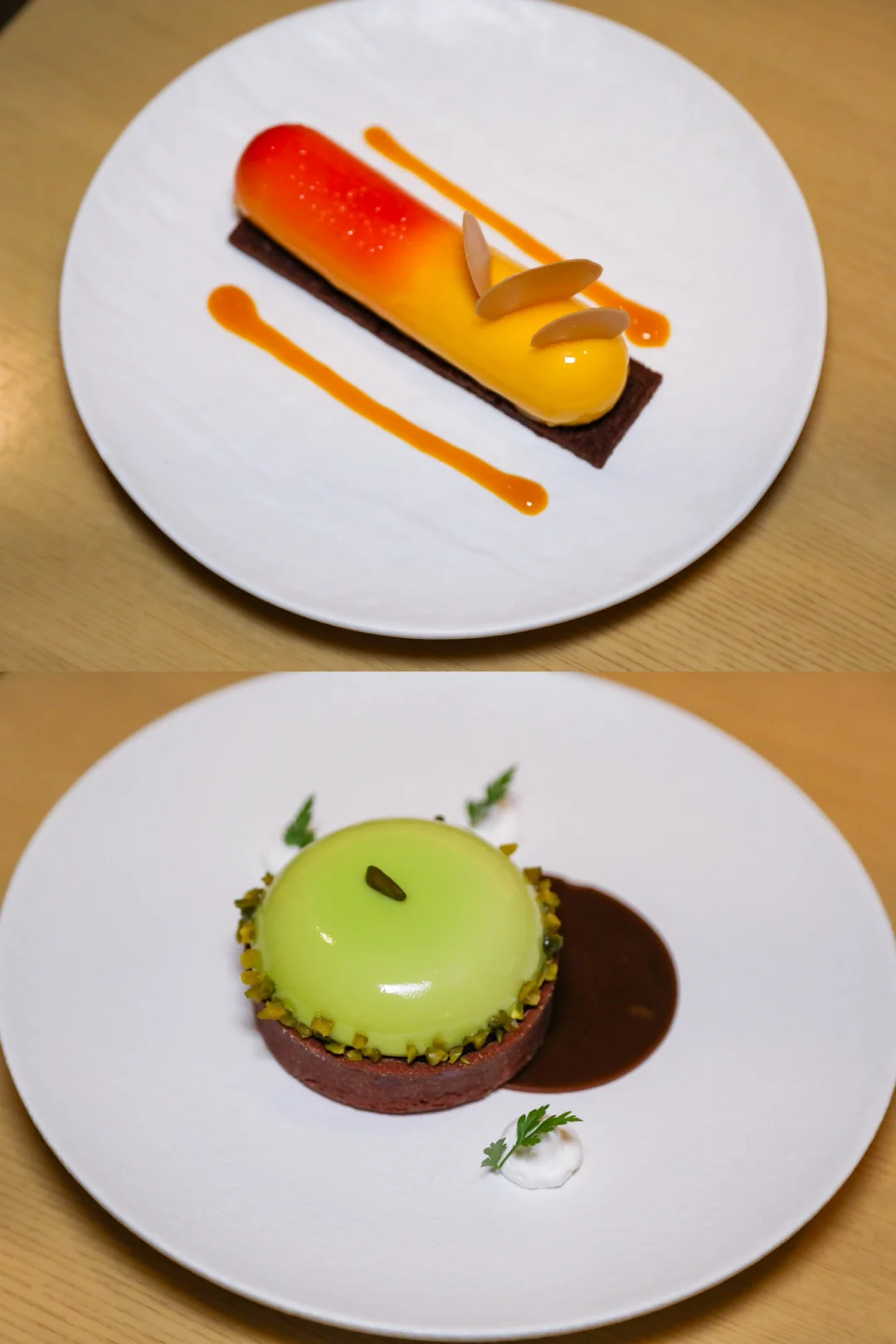 🍴我们点了双人分享套餐(HK$1038),前菜的黑松露溏心蛋配伊比利亚火腿香到跺脚,主菜选了银鳕鱼和烤牛柳,鱼肉嫩到入口即化,牛柳裹着黑椒汁超入味,最后来块开心果巧克力挞,甜而不腻~加了芝士拼盘,搭配餐酒吃也太惬意了。