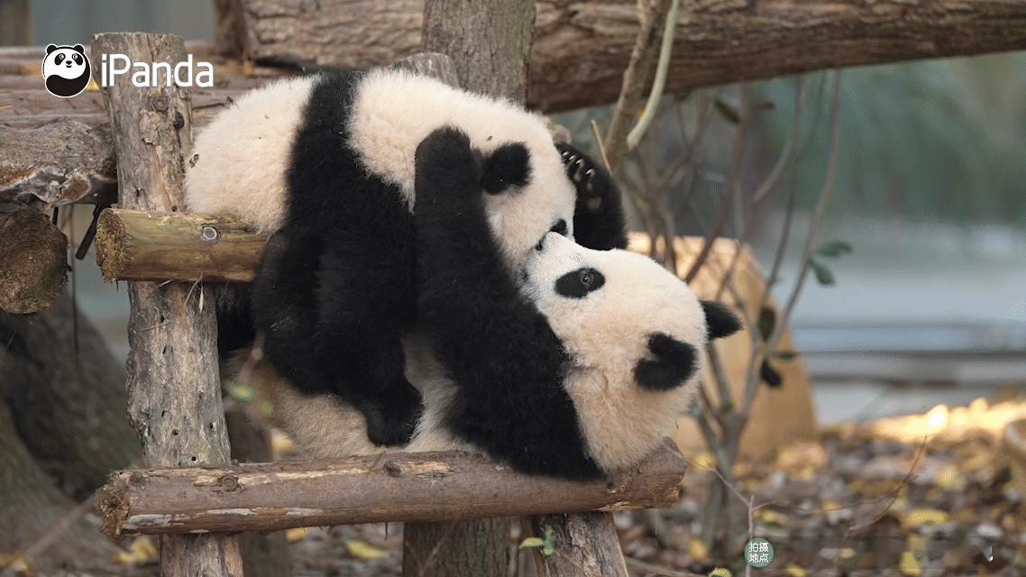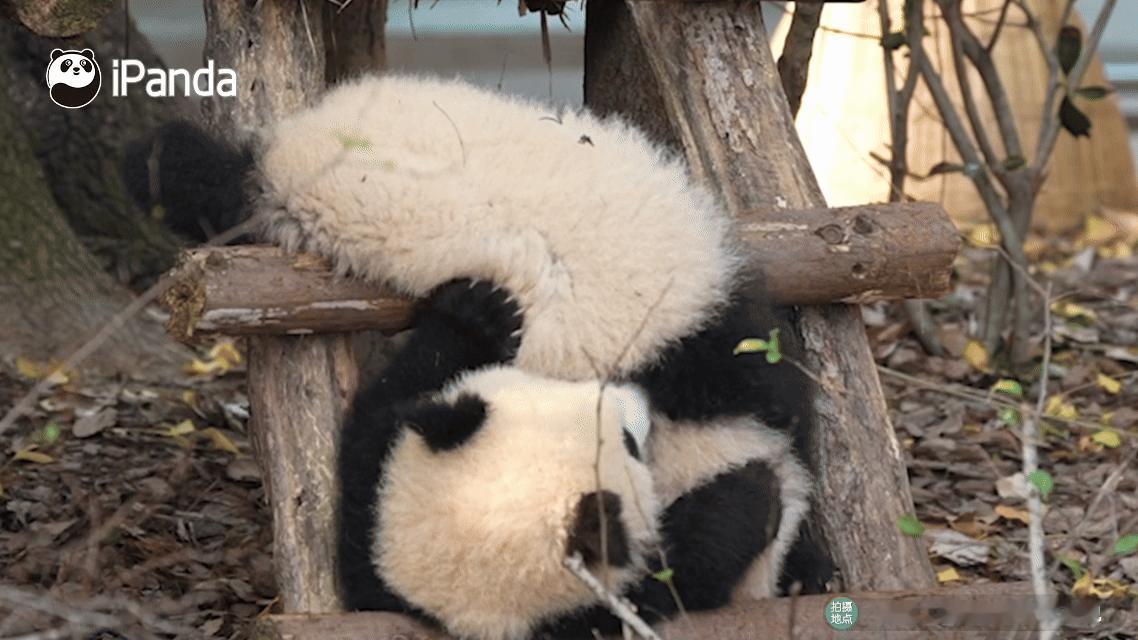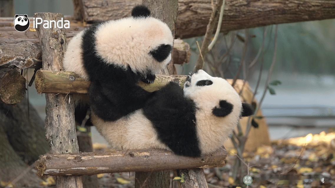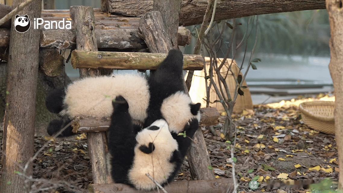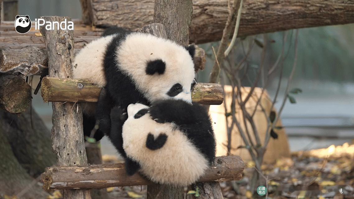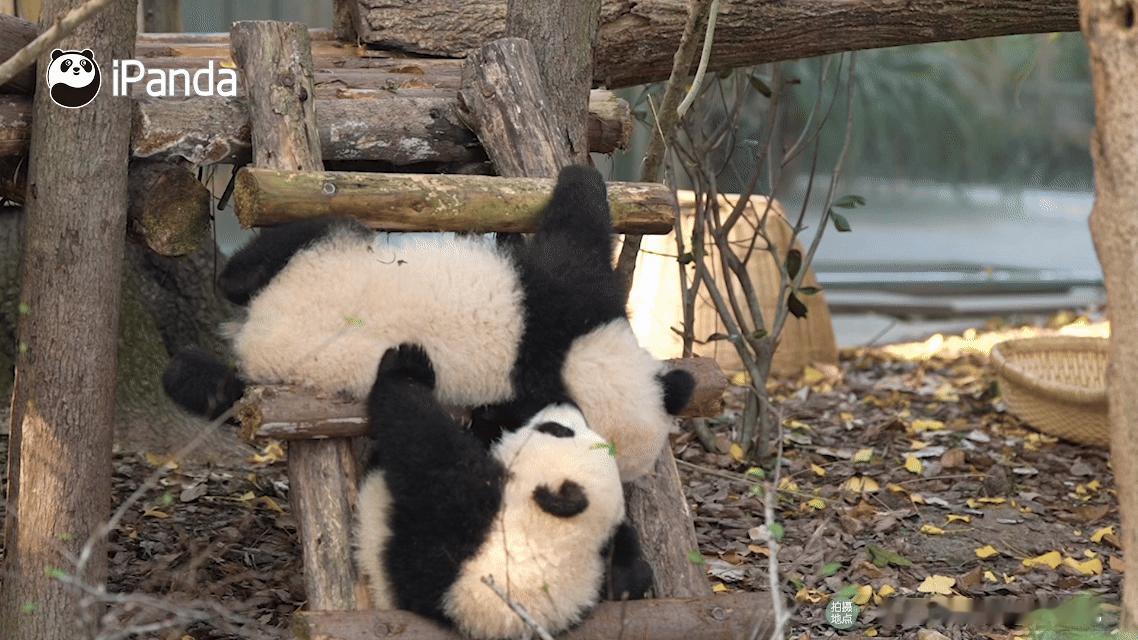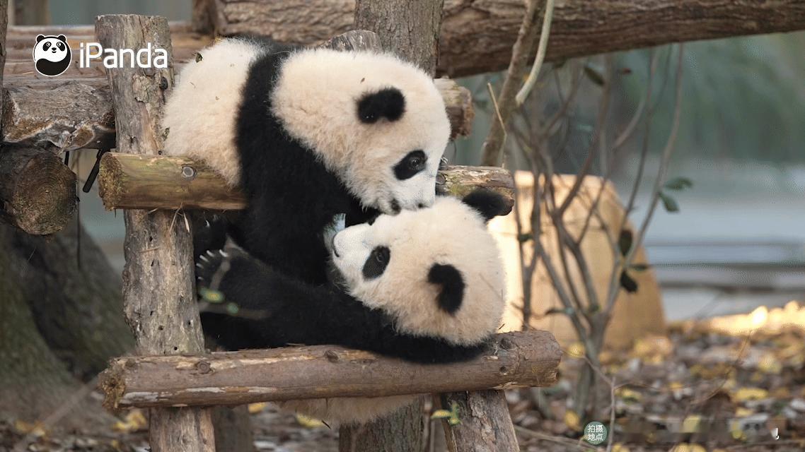熊猫幼崽可爱这块没有上限的吗?看两小只打闹真能看一整天~筑梦熊猫家园 熊猫趣图